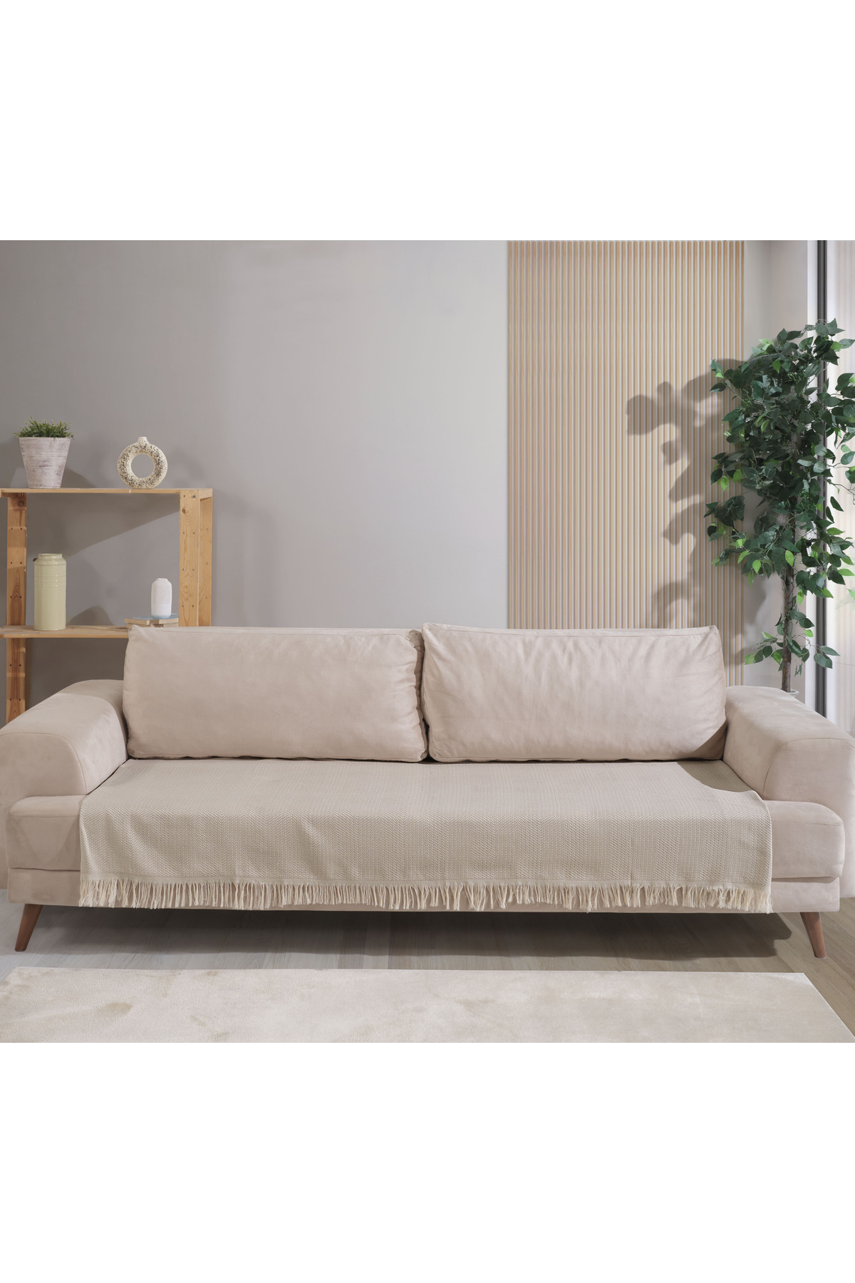 Bej Pamuklu 2'li Koltuk Örtüsü 115x200 Önden Saçaklı Çizgili Desenli Bej Pamuklu 2'li Koltuk Örtüsü 115x200 Önden Saçaklı Çizgili Desenli çizgilisaçaklı تک سایز