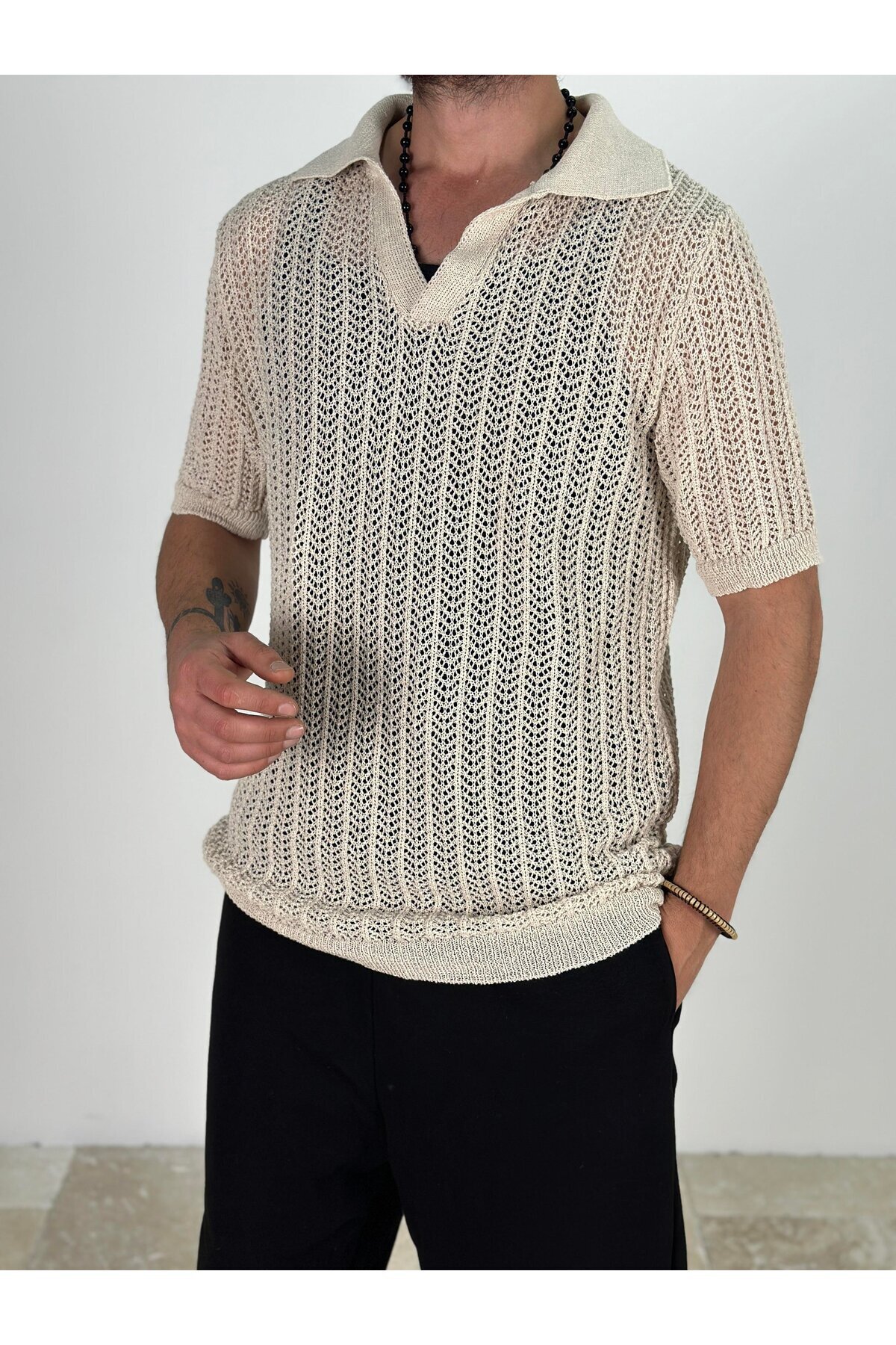 Örme Triko Polo Bej T-Shirt Örme Triko Polo Bej T-Shirt CC240036 XL