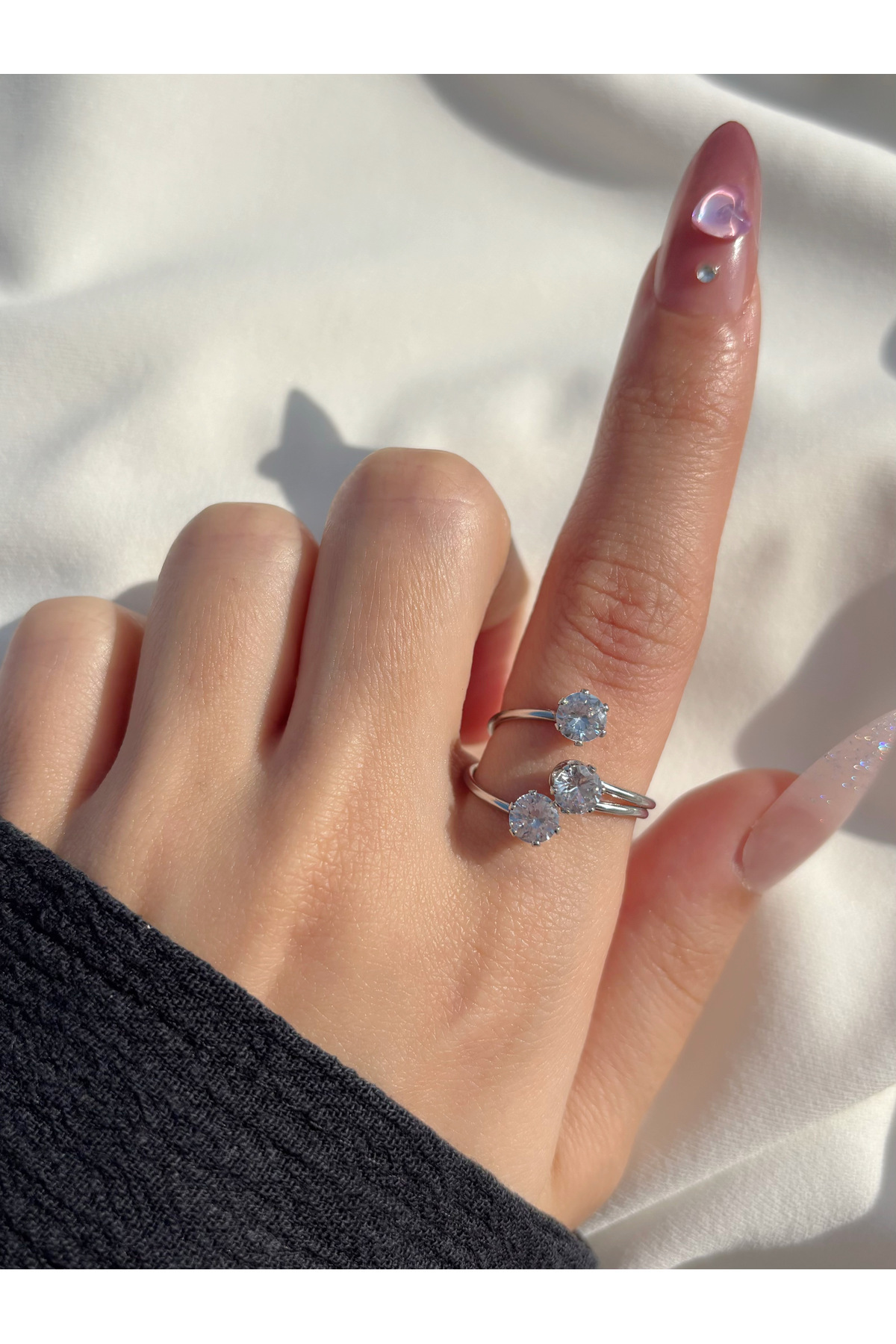 Kadın Gümüş Renk İkili Taşlı Kelebek Yüzük Kadın Gümüş Renk İkili Taşlı Kelebek Yüzük ysx373 تک سایز