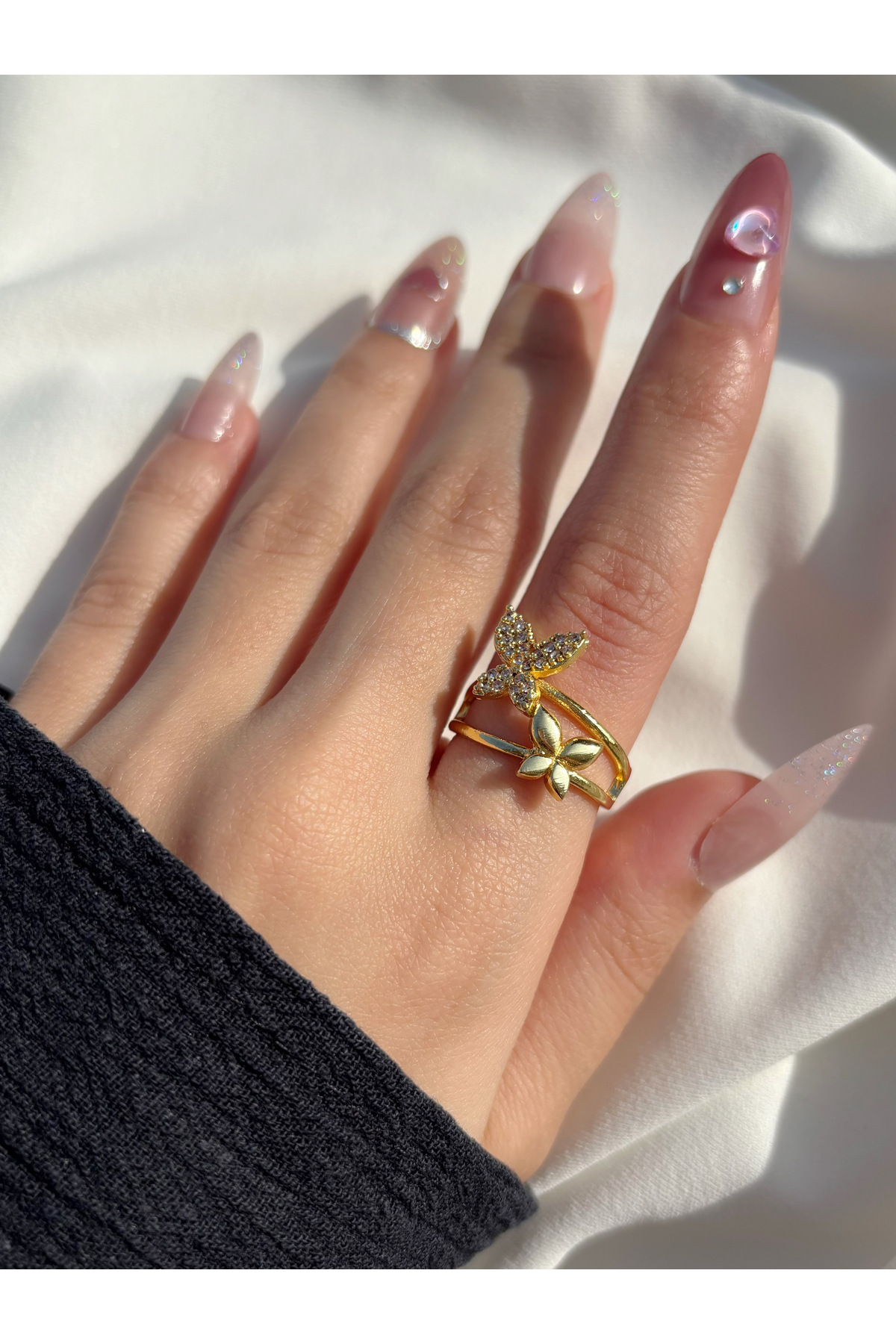 Kadın Gold Renk İkili Taşlı Kelebek Yüzük Kadın Gold Renk İkili Taşlı Kelebek Yüzük ysx373 تک سایز