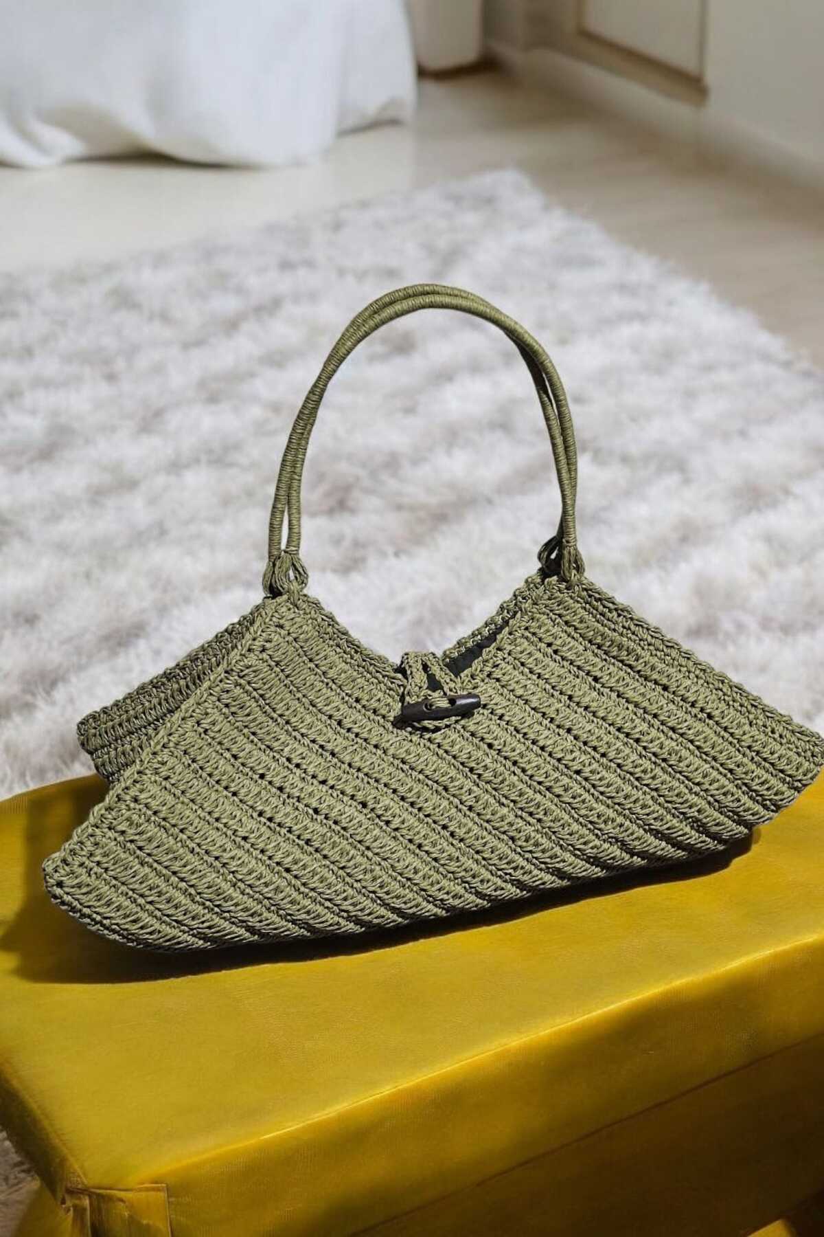 Ahşap Askılı El Örgüsü Kağıt İp Kadın Omuz Çantası (Renk Krem) Ahşap Askılı El Örgüsü Kağıt İp Kadın Omuz Çantası (Renk Krem) FFGT87 تک سایز