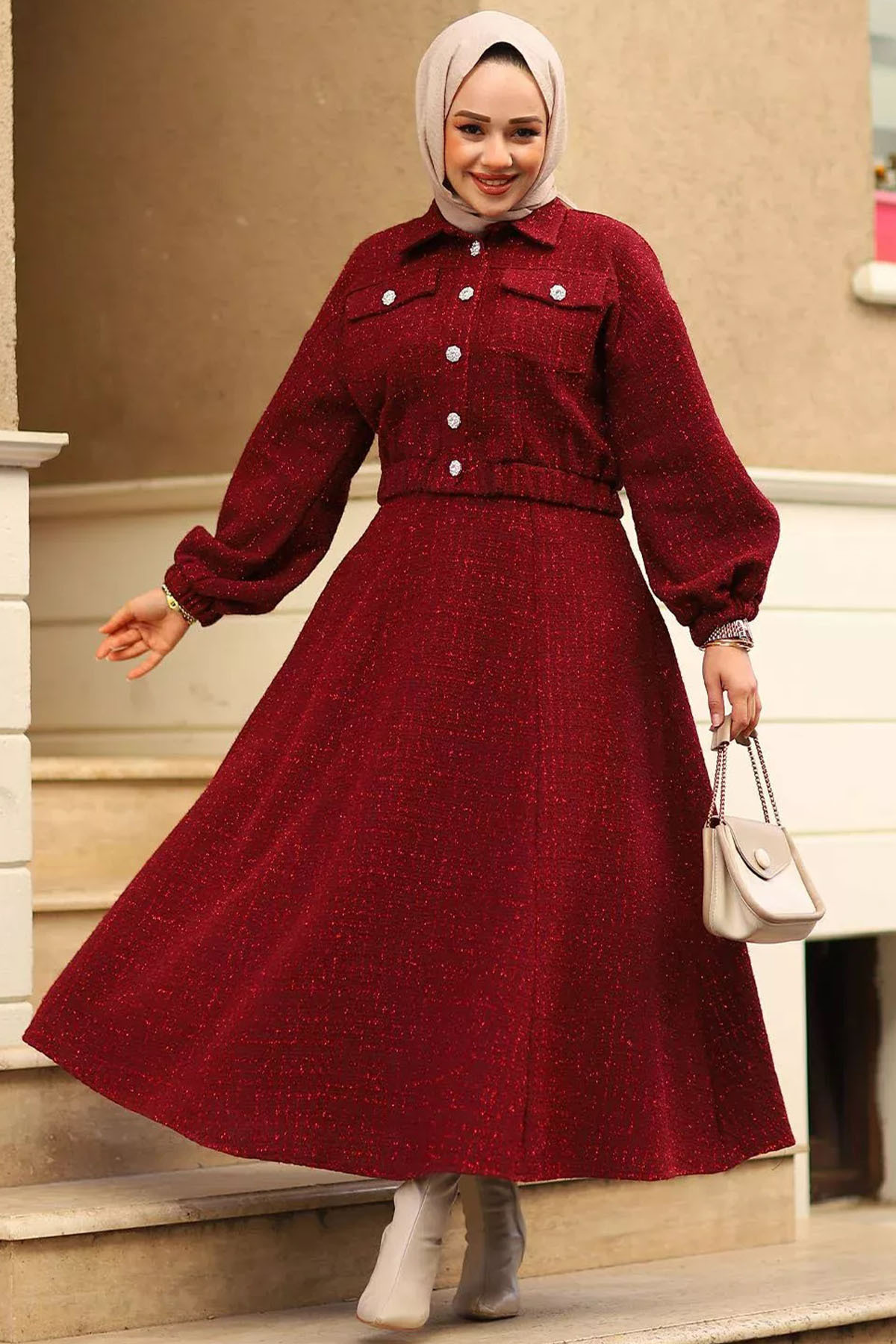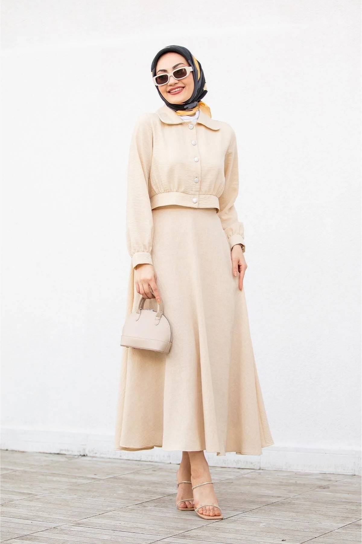 Kadın Simli Ceket Etek Takım -Vizon Kadın Simli Ceket Etek Takım -Vizon AYN82 38