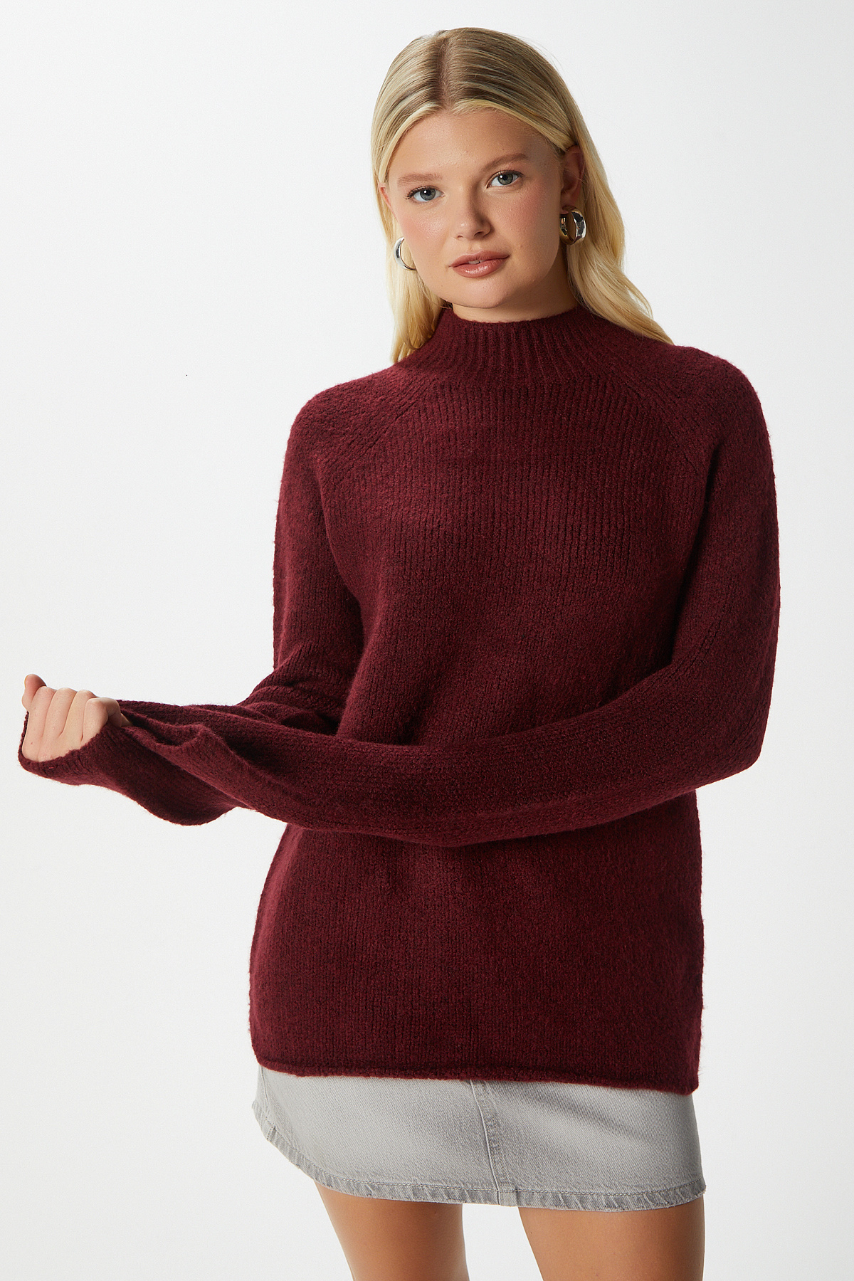 Kadın Teresa Bordo Balıkçı Yaka Oversize Triko Kazak Kadın Teresa Bordo Balıkçı Yaka Oversize Triko Kazak 1407 Standart