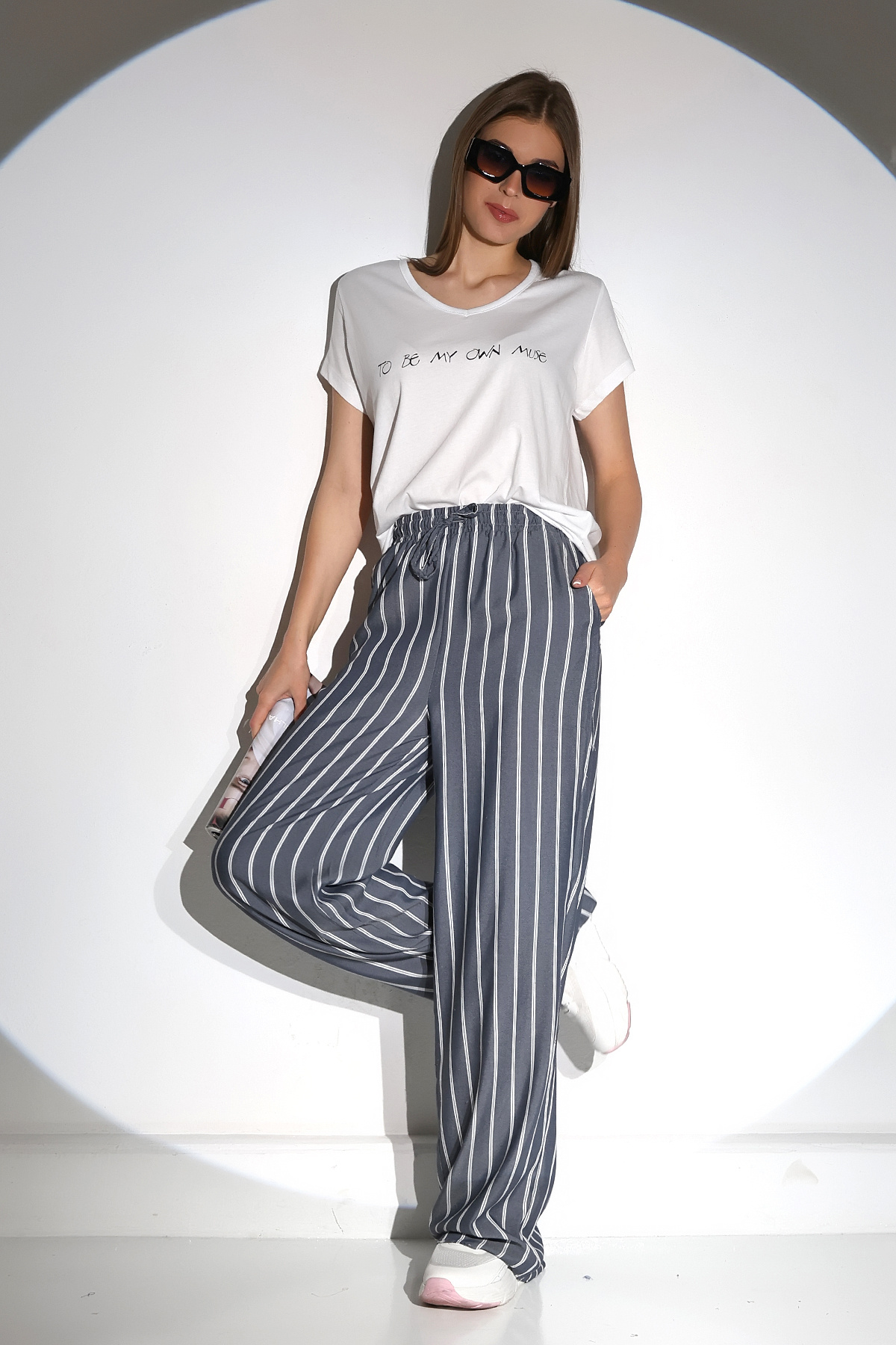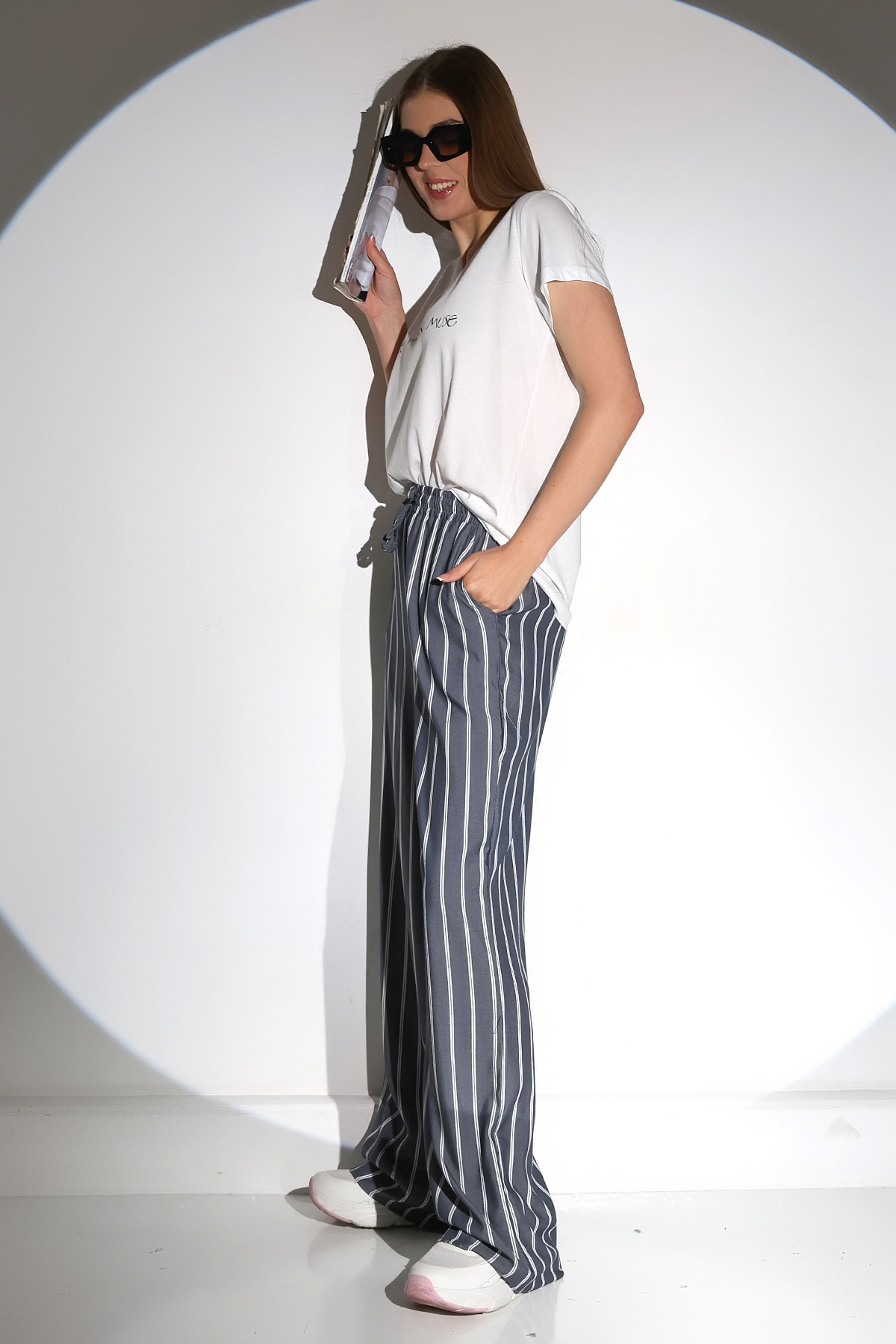 Kadın Gri Beyaz Çizgili Pantolon Kadın Gri Beyaz Çizgili Pantolon DKGE-101 46