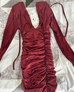 Parlak Kumaşlı Drapeli Mini Karly Elbise Bordo Parlak Kumaşlı Drapeli Mini Karly Elbise Bordo HLFW25-00027 L