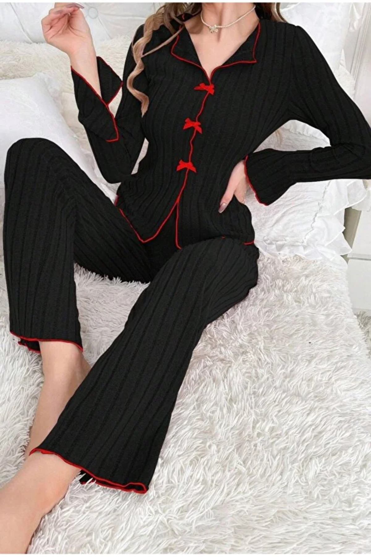 Kadın %100 Pamuklu Siyah Çiçek Desenli Gömlek Yaka Boydan Düğmeli Uzun Kollu Pijama Takımı Kadın %100 Pamuklu Siyah Çiçek Desenli Gömlek Yaka Boydan Düğmeli Uzun Kollu Pijama Takımı Kadın233 2XL