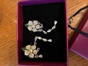 YONCA FİGÜR VE YAPRAKLI TAŞLI GOLD TASARIM KÜPE YONCA FİGÜR VE YAPRAKLI TAŞLI GOLD TASARIM KÜPE BMK067TK S