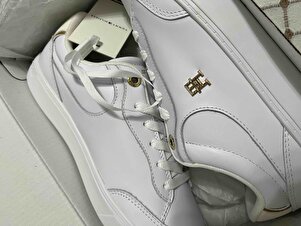Kadın TH Monogram Deri Court Spor Ayakkabı - Beyaz Kadın TH Monogram Deri Court Spor Ayakkabı - Beyaz FW0FW08322-YBS 42