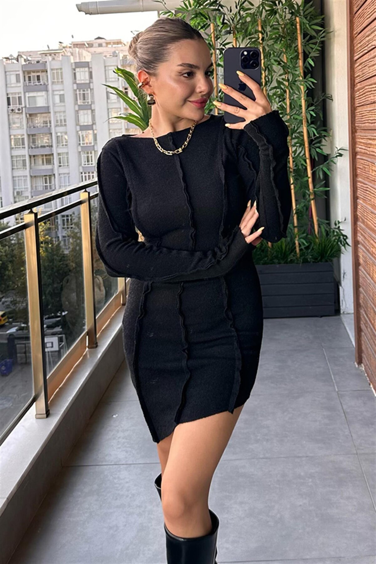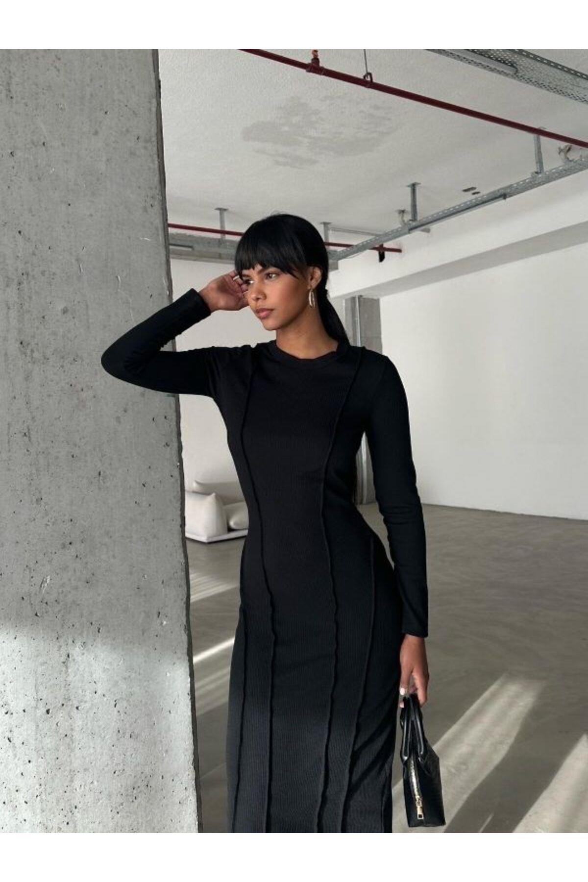 Ters Dikişlı Dik yaka Kaşkorse Elbise Ters Dikişlı Dik yaka Kaşkorse Elbise TN20241151 L