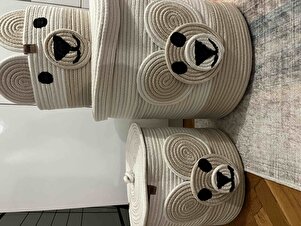 Ürün görseldekinden çok farklı. Ayı yerine fare yapmışlar gibi görünüyor. Renkler de farklı. Çok özensiz. Bir kulağın diğerinden büyük olması, ipin yanlış yerde bitmesi, kapağın sepetle aynı boyutta olmaması gibi birçok ayrıntı var. Ama en önemlisi gözler ve burunla ağız boya kullanarak yapılmış, örgü veya keçe benzeri bir şey kullanılmamış. Boyarken de özen gösterilmemiş. Gelişigüzel bir şekilde boya sürülmüş. Sonucunda ortaya çok sevimsiz ve ayı demeye zorlanacağımız birtakım yaratıklar çıkmış. Halbuki ürün görseli hiç böyle değildi. Bu da insana kendini kandırılmış hissettiriyor. İade ediyorum.