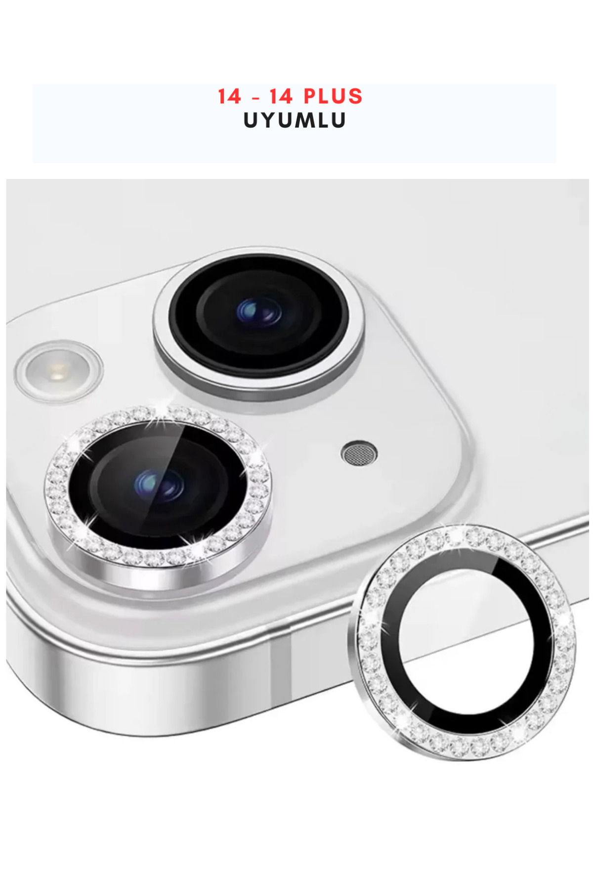 Apple İphone 14 Uyumlu Taşlı Kamera lensi koruyucu mercek lens Gümüş Apple İphone 14 Uyumlu Taşlı Kamera lensi koruyucu mercek lens Gümüş TYCQB40WJN1dkddk تک سایز
