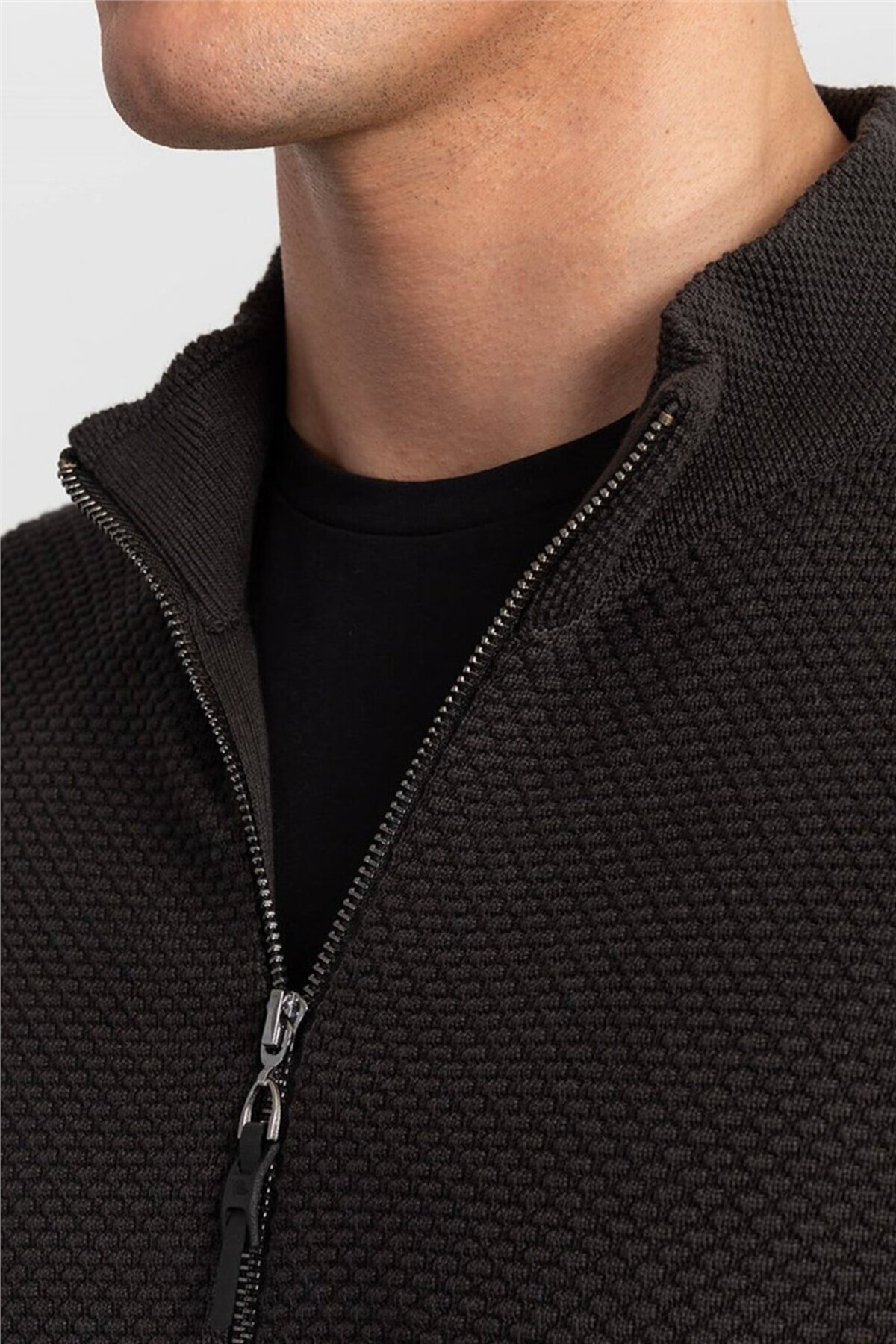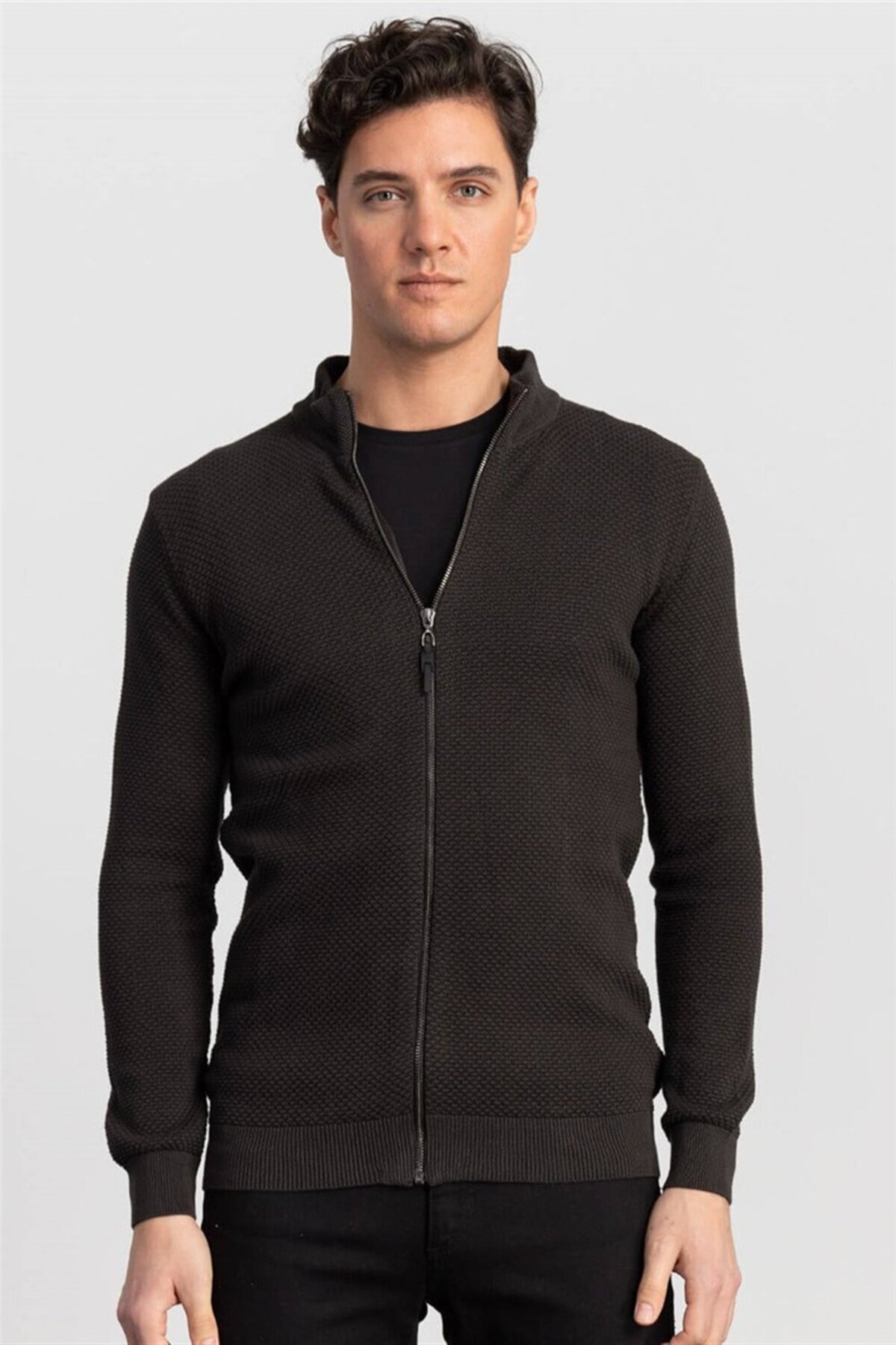 Erkek Standart Fit Normal Kesim Desenli Yarım Balıkçı Yaka Fermuarlı Gri Hırka Erkek Standart Fit Normal Kesim Desenli Yarım Balıkçı Yaka Fermuarlı Gri Hırka HR200007-DB 2XL