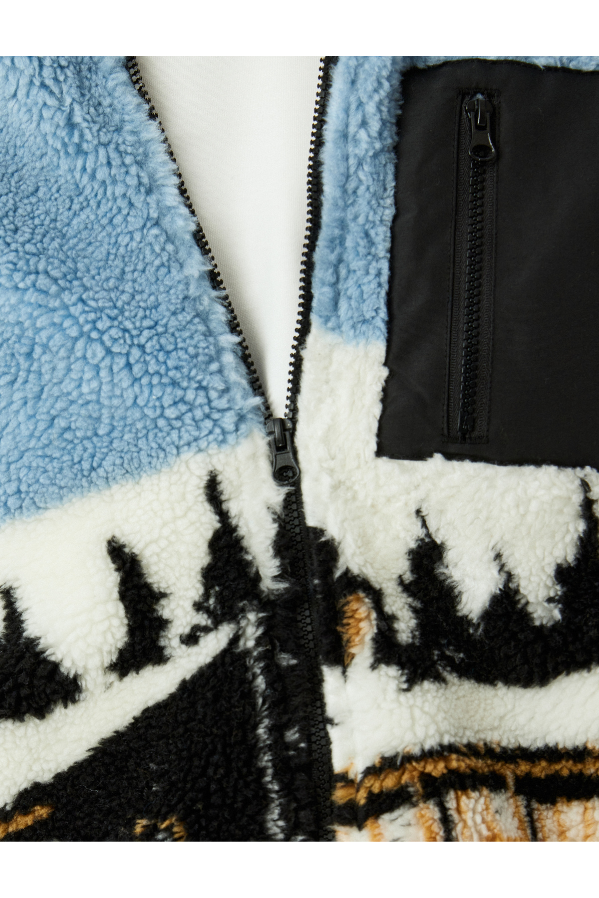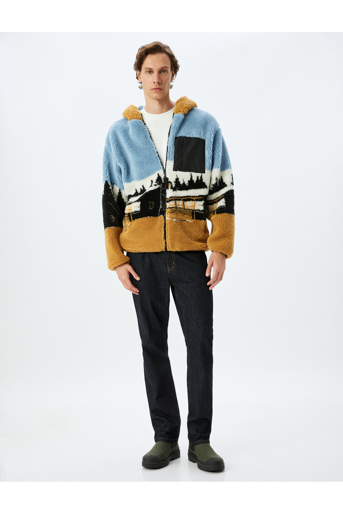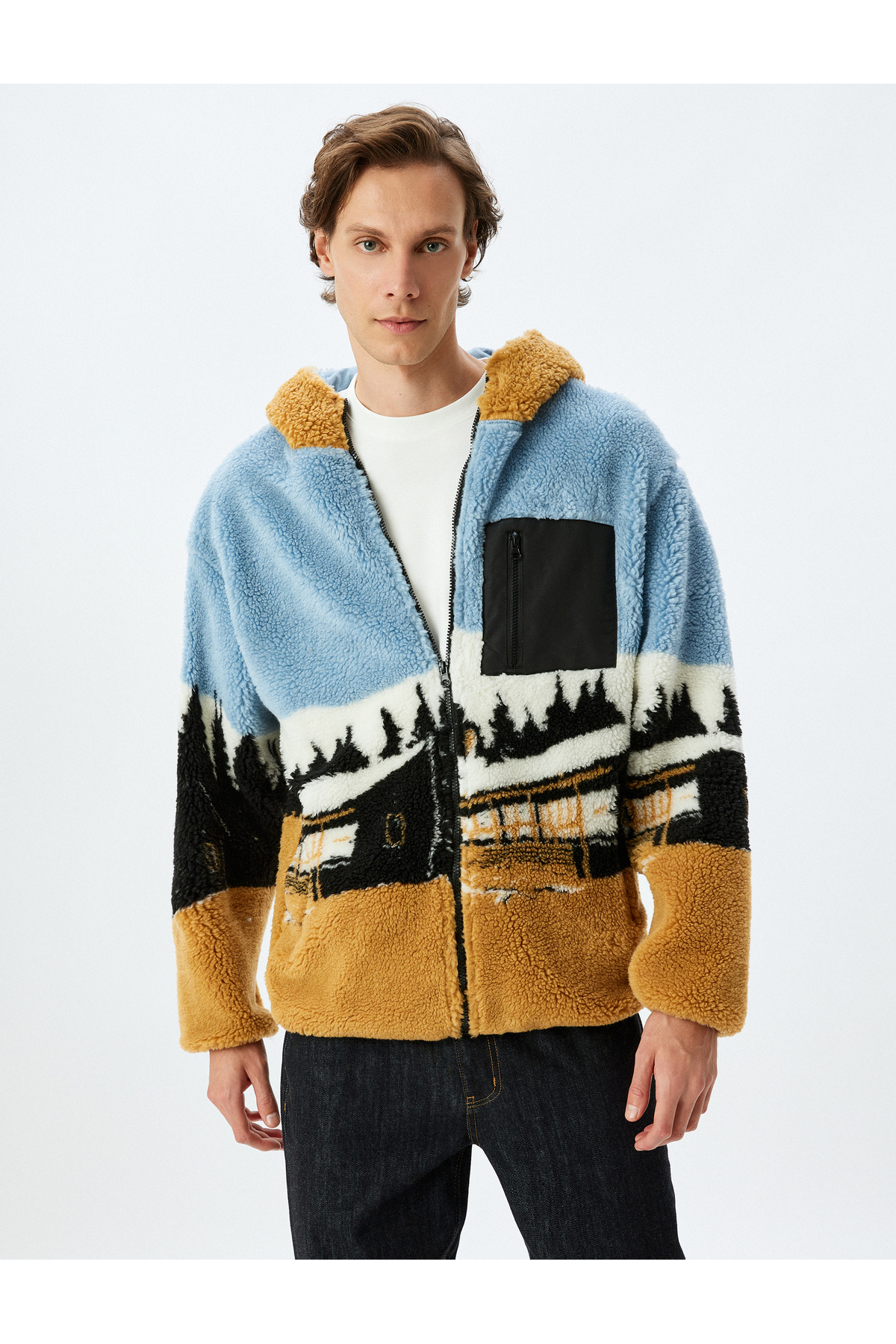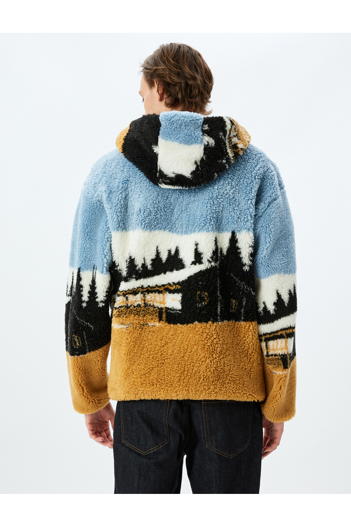 Fermuarlı Manzara Desenli Cep Detaylı Kapşonlu Peluş Ceket Fermuarlı Manzara Desenli Cep Detaylı Kapşonlu Peluş Ceket 5WAM50033MK XL