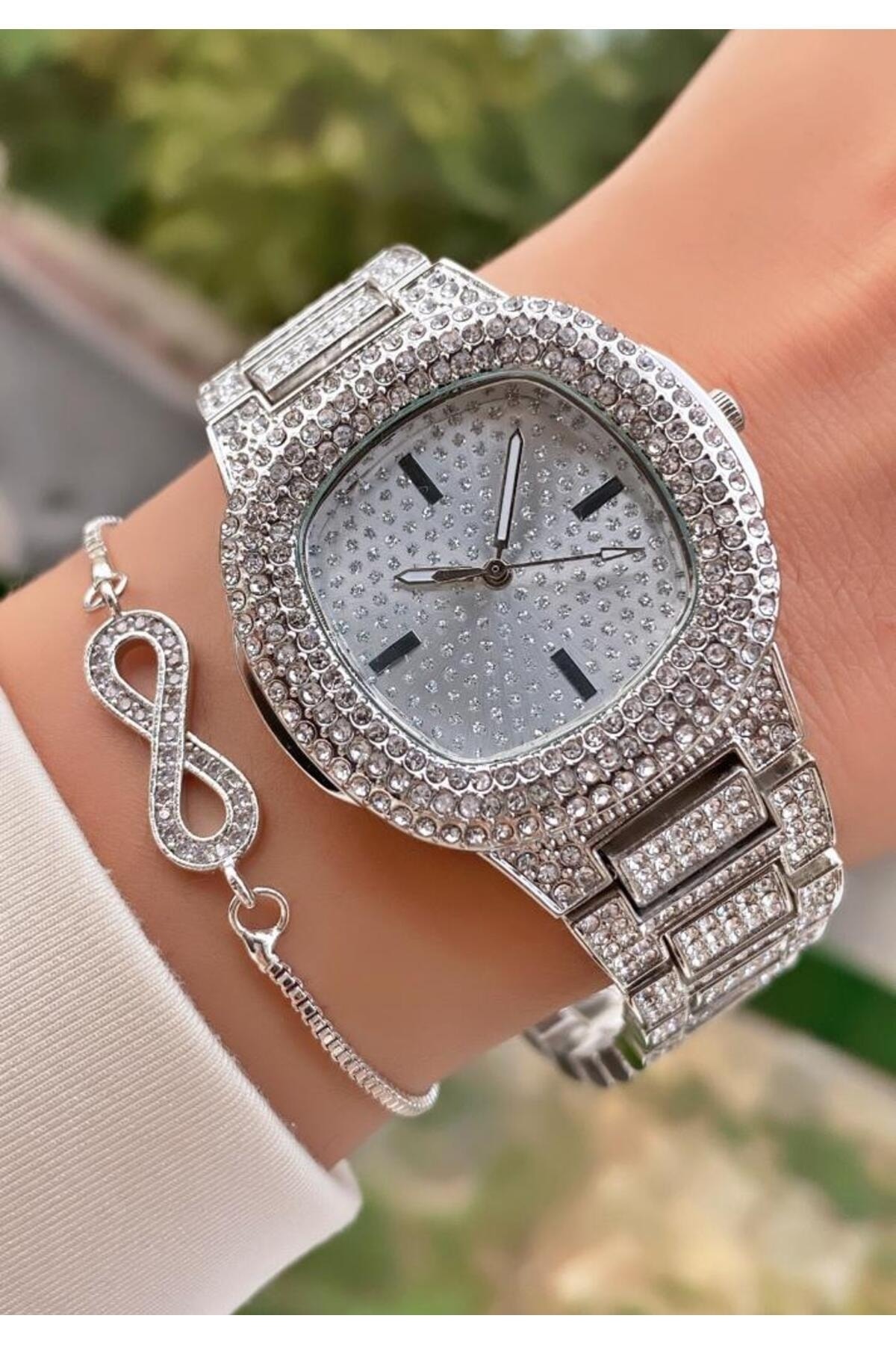 Lüks Tasarım Full Taşlı Özel Seri Metal Kordon Kadın Kol Saati-Bileklik Hediyeli Lüks Tasarım Full Taşlı Özel Seri Metal Kordon Kadın Kol Saati-Bileklik Hediyeli TS1029 تک سایز