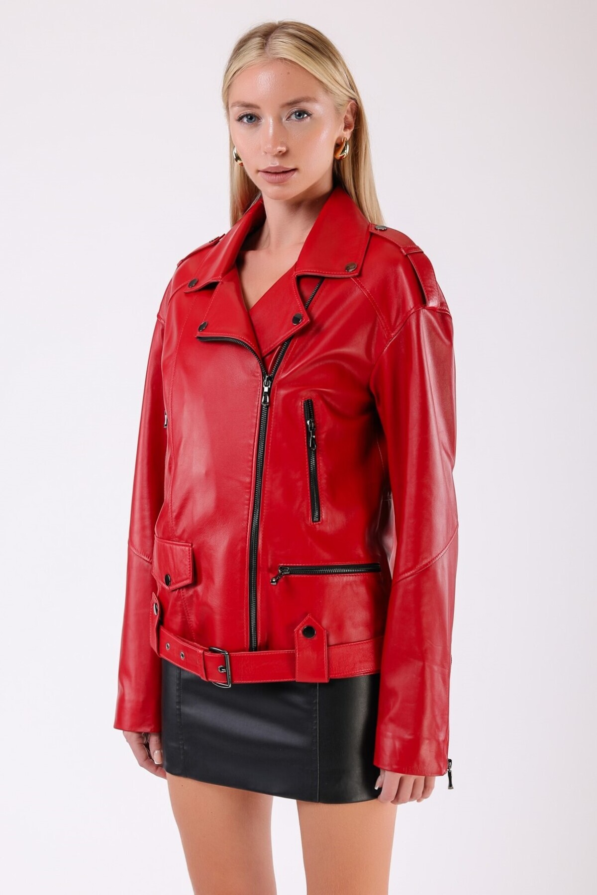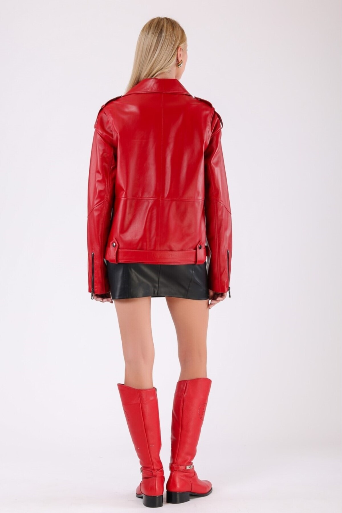 Kırmızı Oversize Biker Hakiki Deri Ceket Kırmızı Oversize Biker Hakiki Deri Ceket A-482-2 3XL