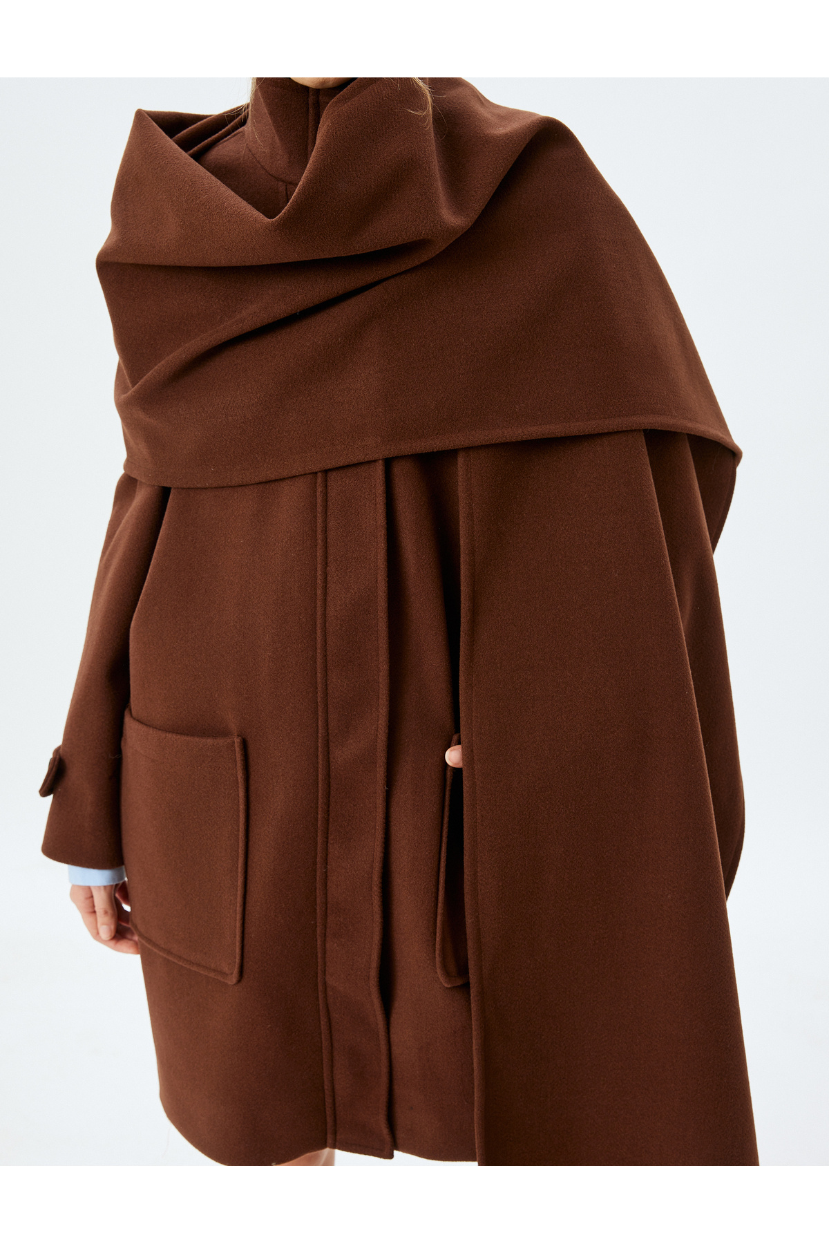 Şal Yaka Fermuarlı Çıtçıt Düğmeli Astarlı Cep Detaylı Kaban Şal Yaka Fermuarlı Çıtçıt Düğmeli Astarlı Cep Detaylı Kaban 5WAL00050IW 40