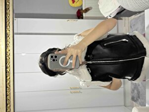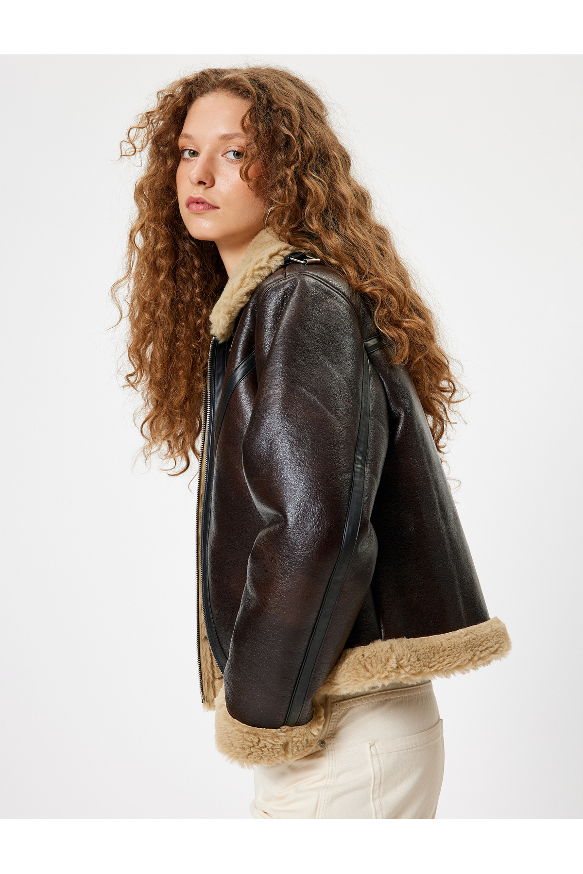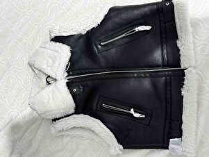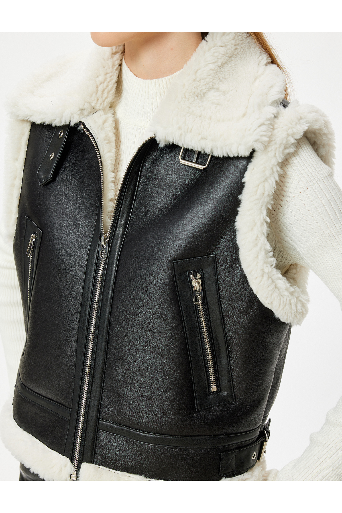 Parlak Deri Görünümlü Yelek Suni Kürk Yaka Kolsuz Fermuarlı Cep Detaylı Parlak Deri Görünümlü Yelek Suni Kürk Yaka Kolsuz Fermuarlı Cep Detaylı 5WAL20065IW 40