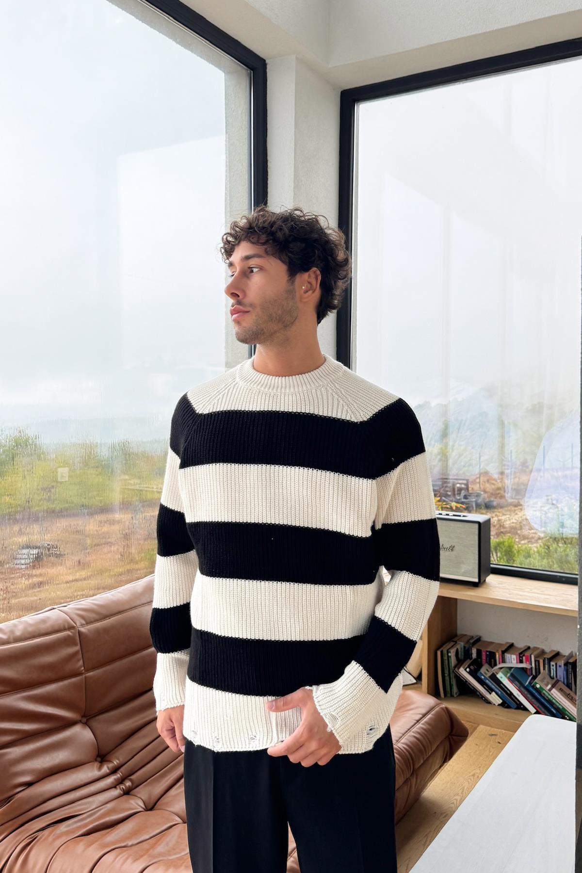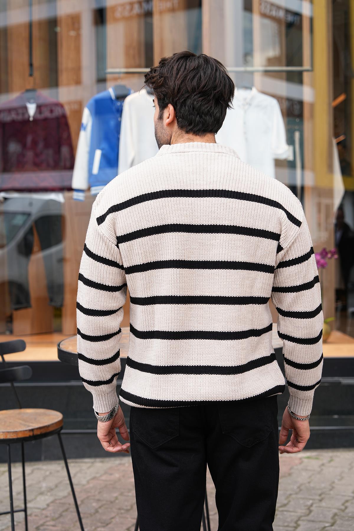 Bisiklet Yaka Çizgili Kalın Kazak Bisiklet Yaka Çizgili Kalın Kazak T-7072 XL