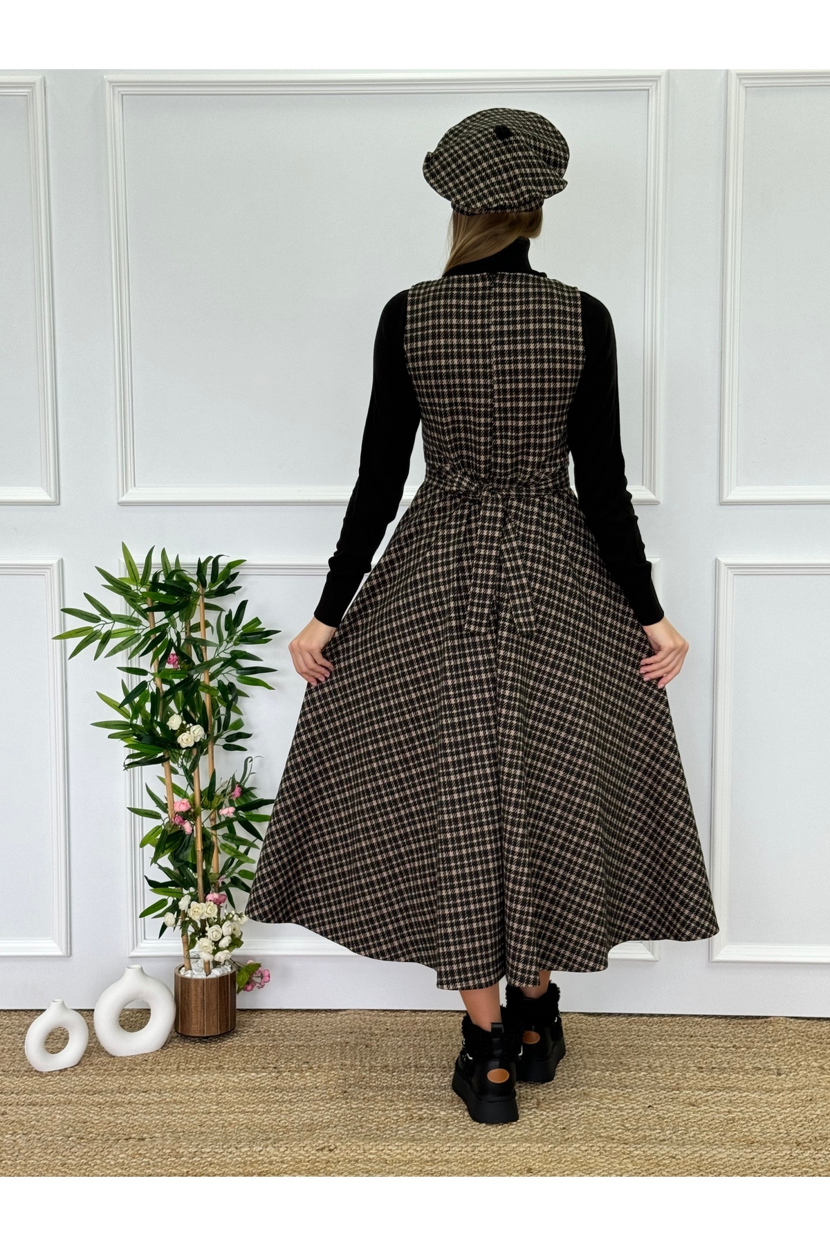 Ekoseli Kuşaklı Kışlık Kahverengi Jile Ekoseli Kuşaklı Kışlık Kahverengi Jile KJT-05 44