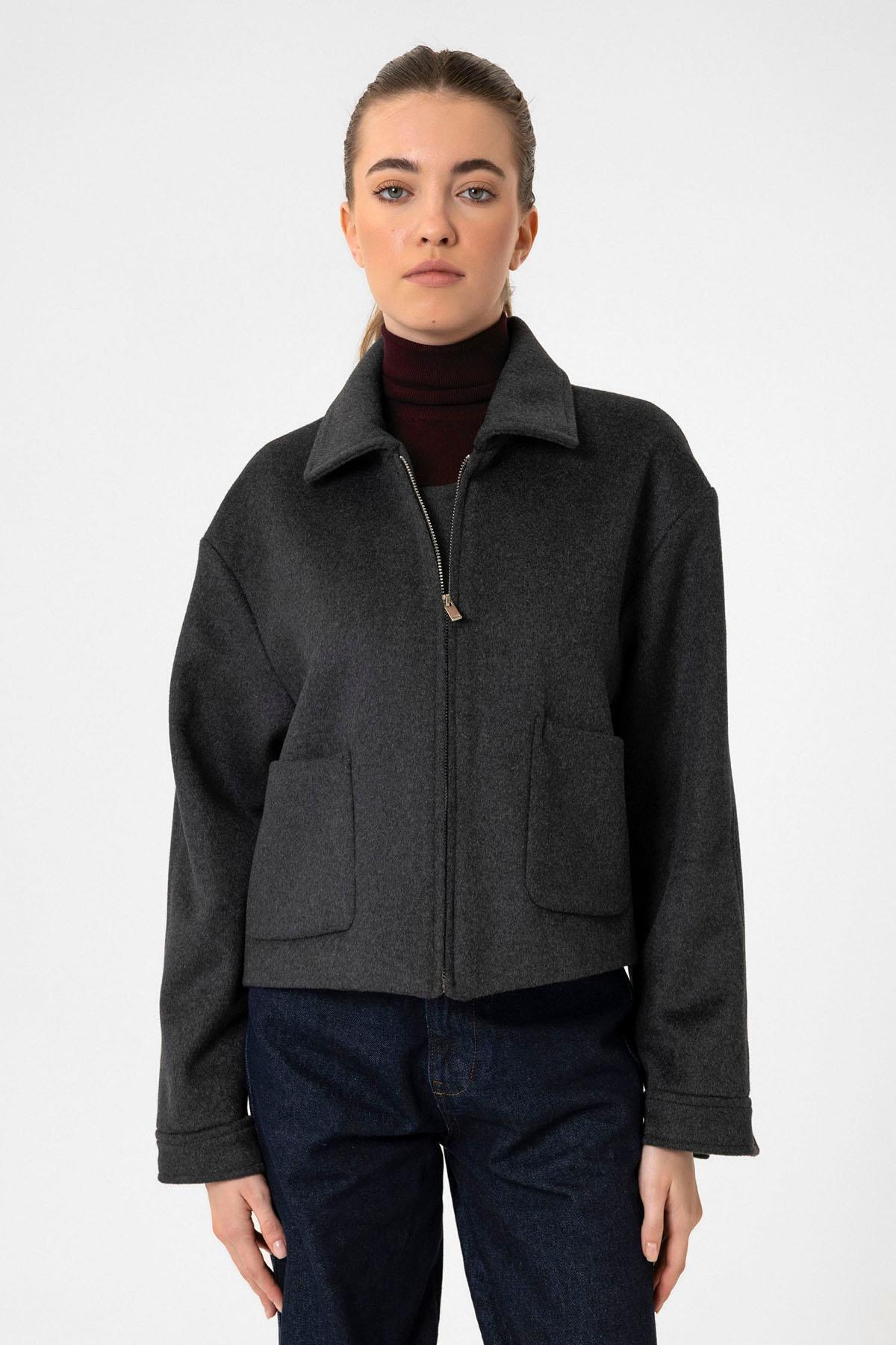 Antrasit Kadın Yün Karışımlı Kısa Ceket Antrasit Kadın Yün Karışımlı Kısa Ceket BA24Y404 L
