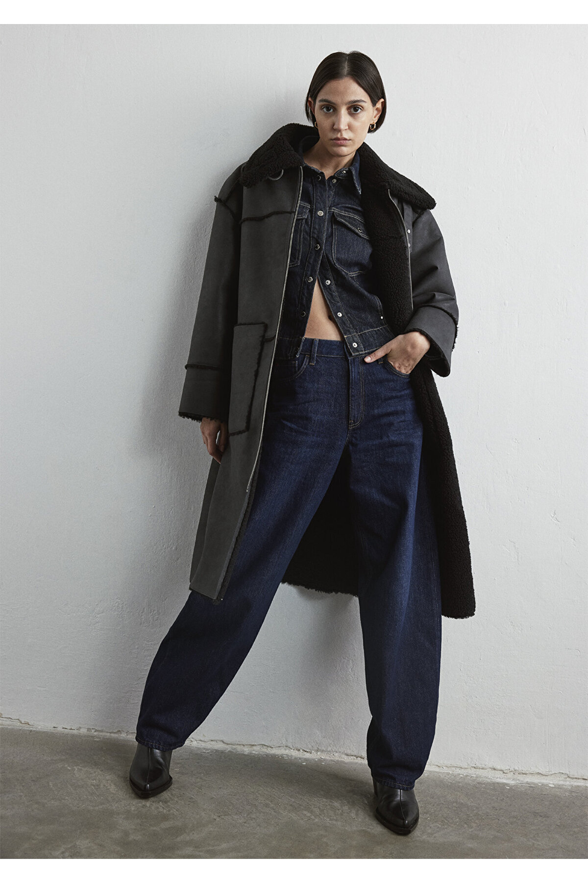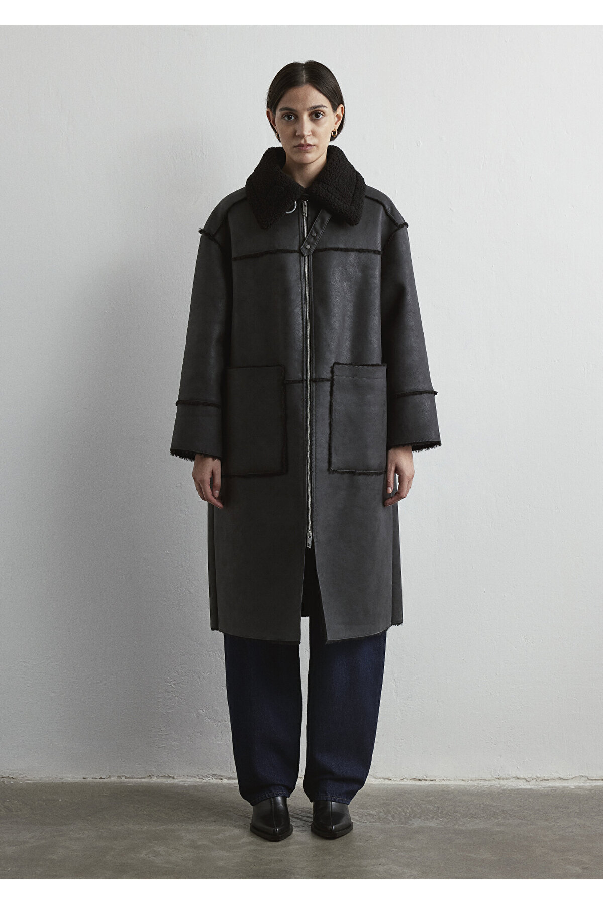 Sherpa Detaylı Suni Süet Kaban Loose Fit / Bol Rahat Kesim 1110572-900 Sherpa Detaylı Suni Süet Kaban Loose Fit / Bol Rahat Kesim 1110572-900 M/L