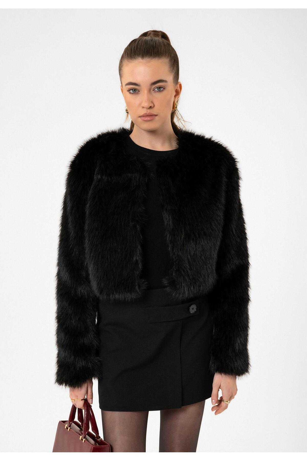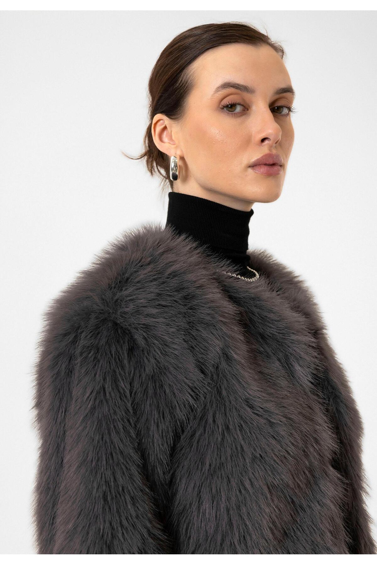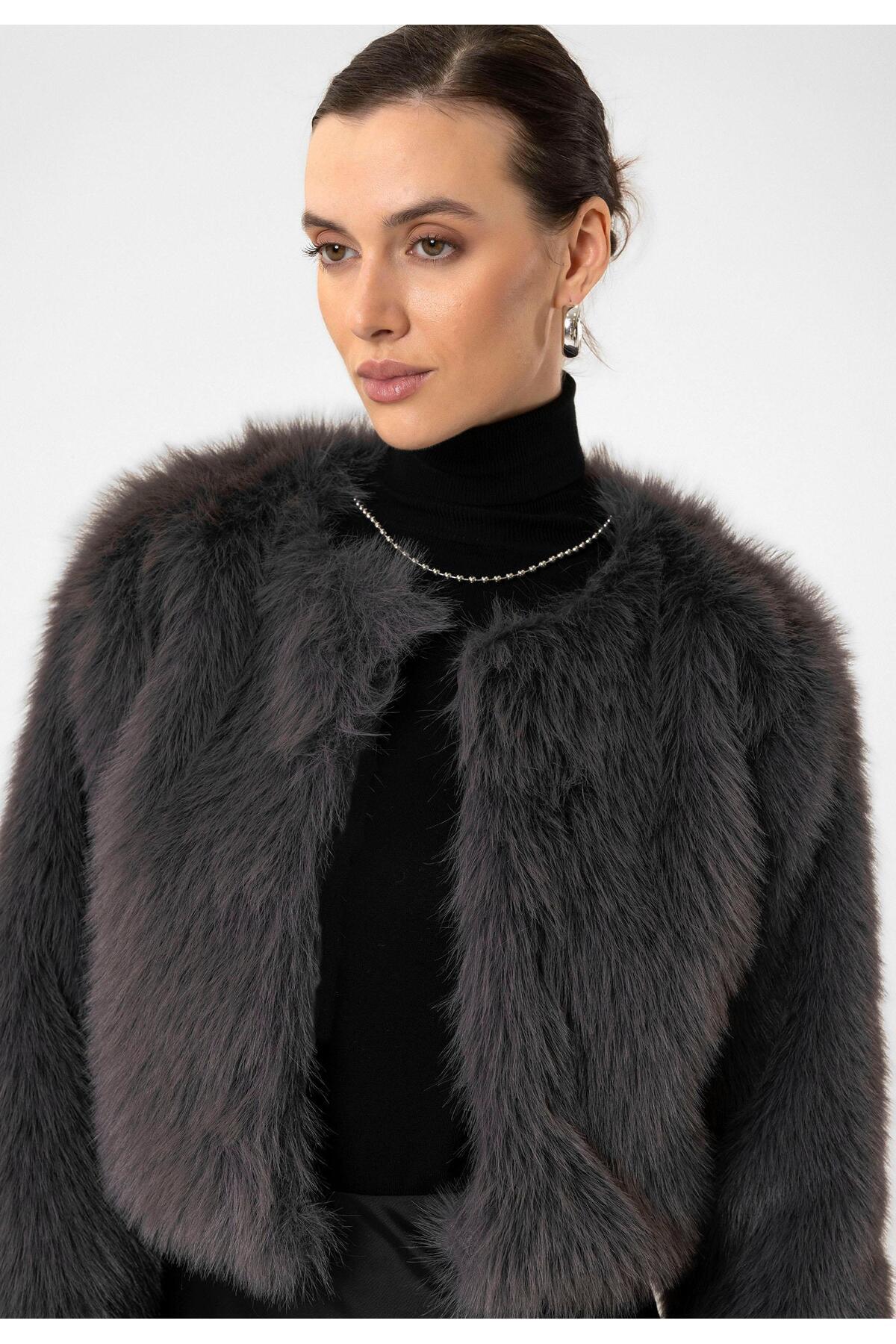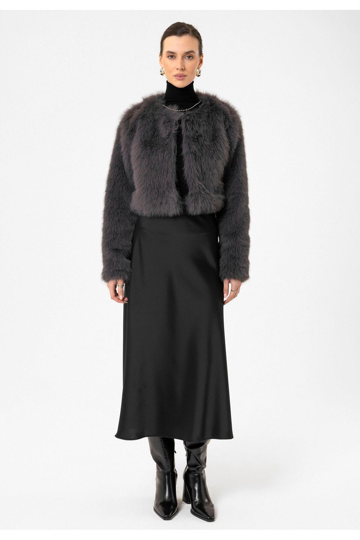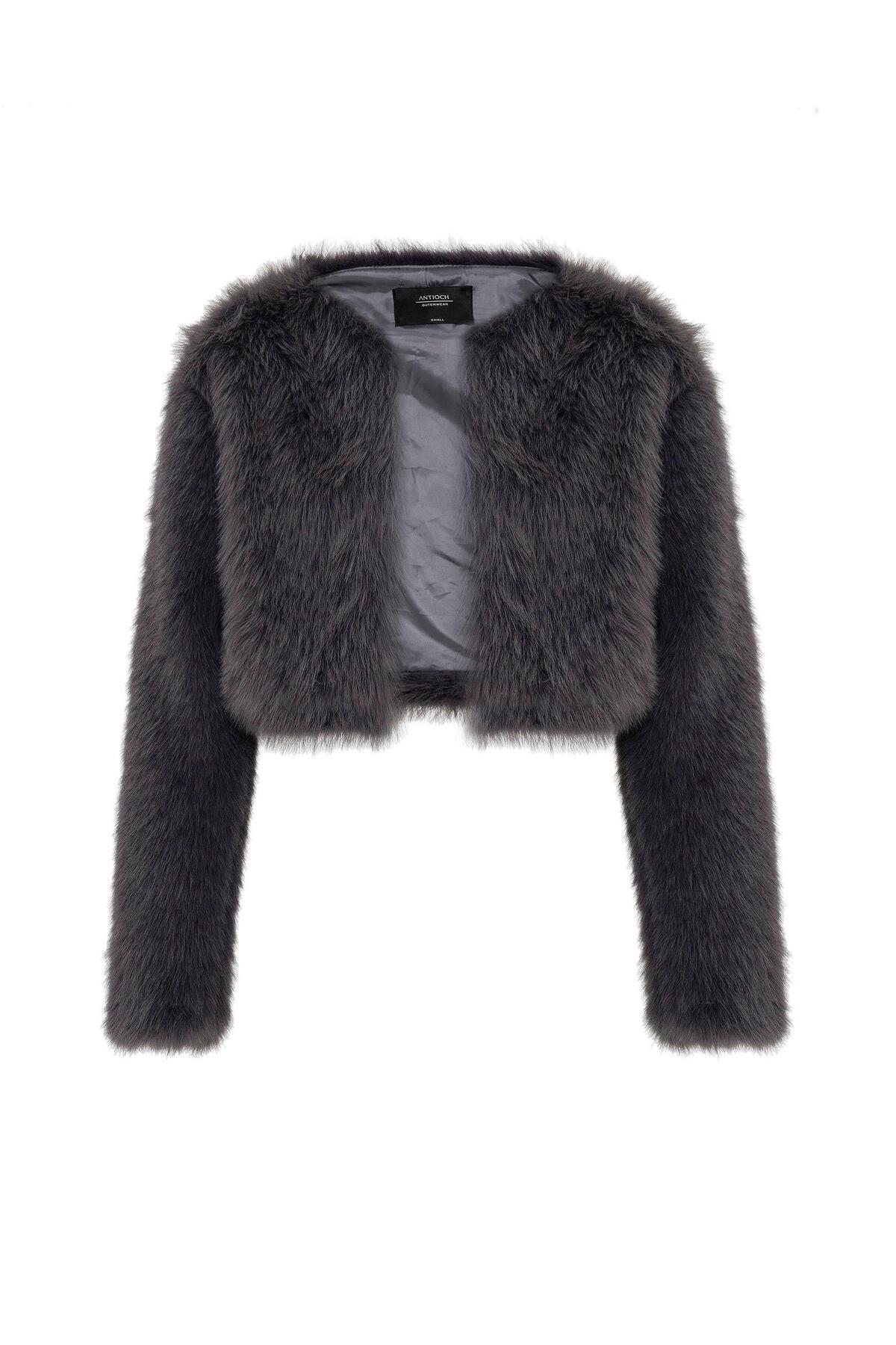 Gri Kadın Suni Kürk Crop Ceket Gri Kadın Suni Kürk Crop Ceket BA24Y412 XL