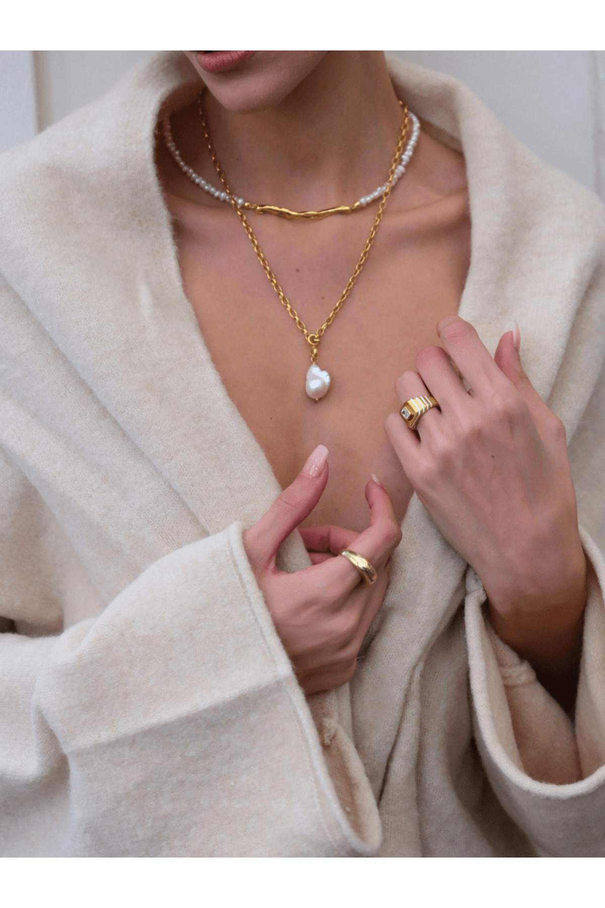 Pontus Yatay Gümüşlü İnci Kolye Gold Pontus Yatay Gümüşlü İnci Kolye Gold 60000012 45 cm