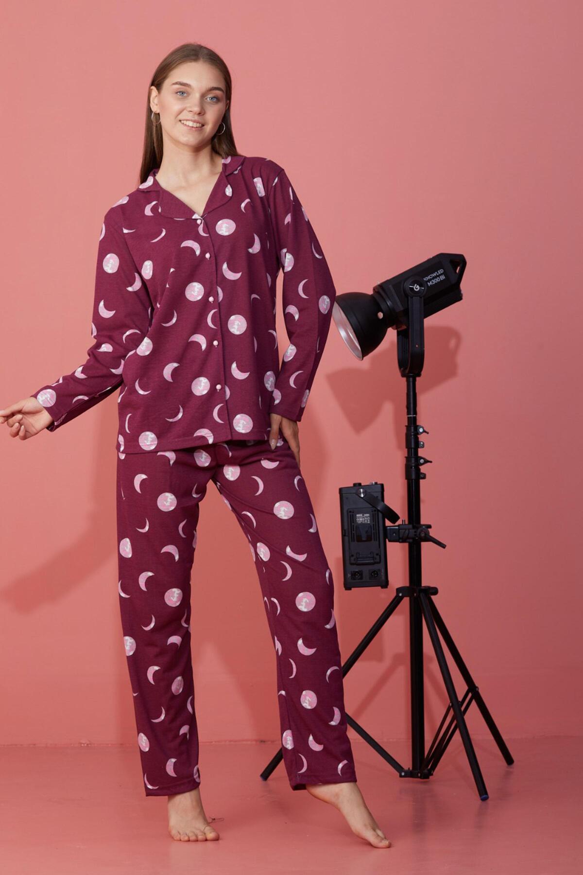 Moonlight Desen Düğmeli Mürdüm Pijama Takımı Moonlight Desen Düğmeli Mürdüm Pijama Takımı 4001-P803-665 XL