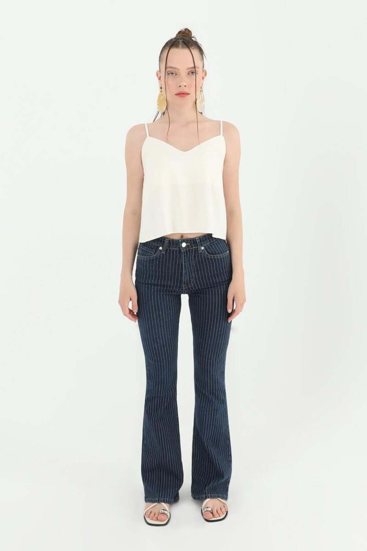 Kadın Yüksek Bel İspanyol Paça Çizgili Denim Pantolon Odress Soul 31879 BLUE Kadın Yüksek Bel İspanyol Paça Çizgili Denim Pantolon Odress Soul 31879 BLUE ODR0002327S 42