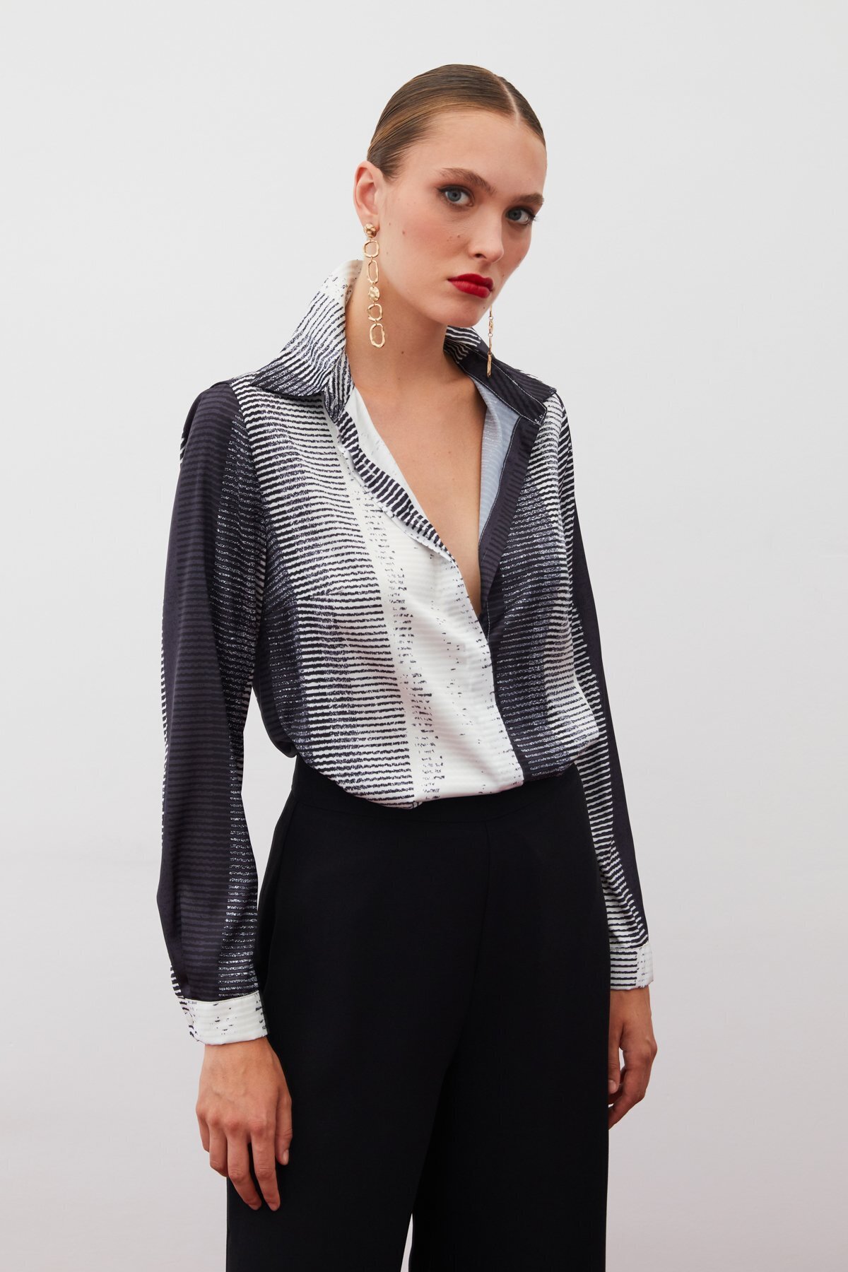 Desenli Düz Gömlek - SİYAH Desenli Düz Gömlek - SİYAH STN139KGO1523 42
