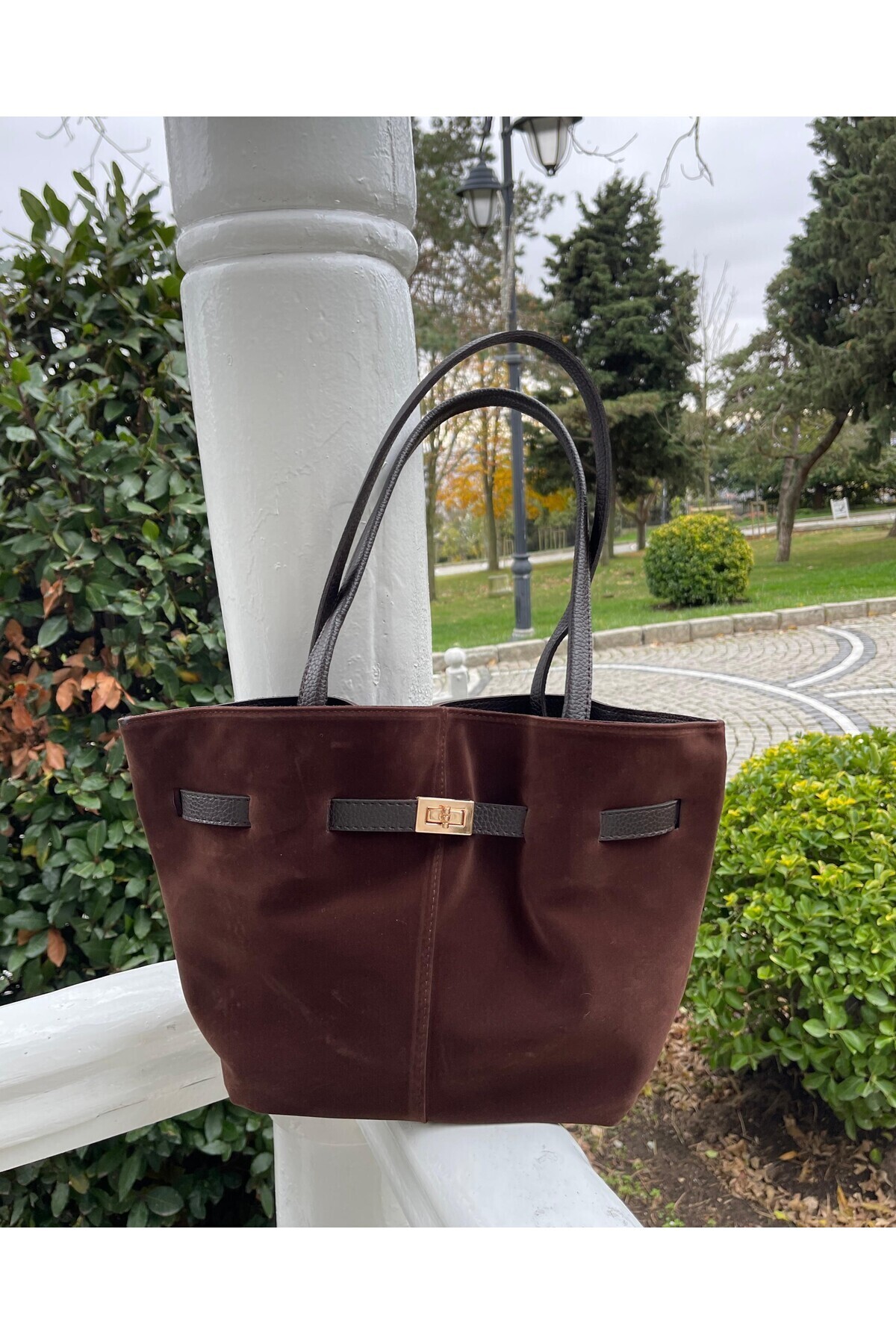 Kadın Cocoa Kahve Süet Deri El Ve Omuz Çantası Kadın Cocoa Kahve Süet Deri El Ve Omuz Çantası 001 Standart