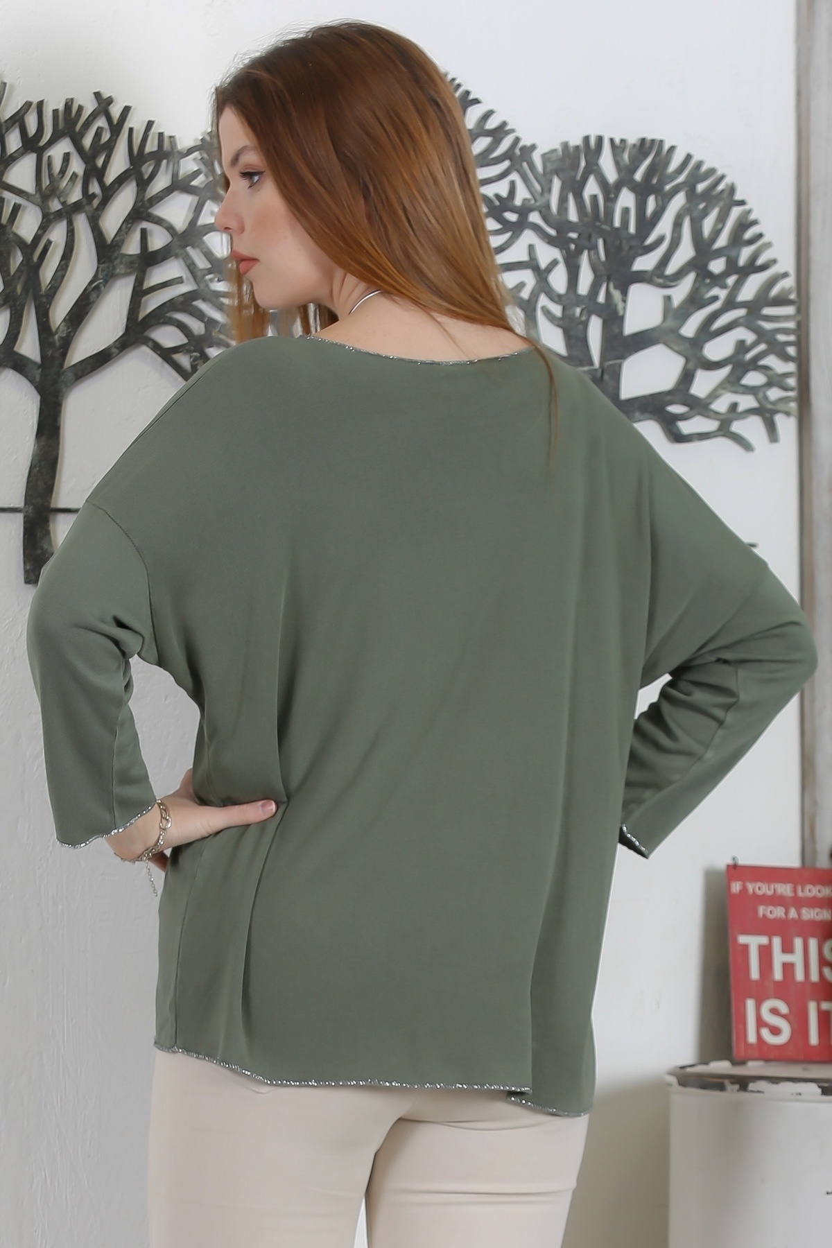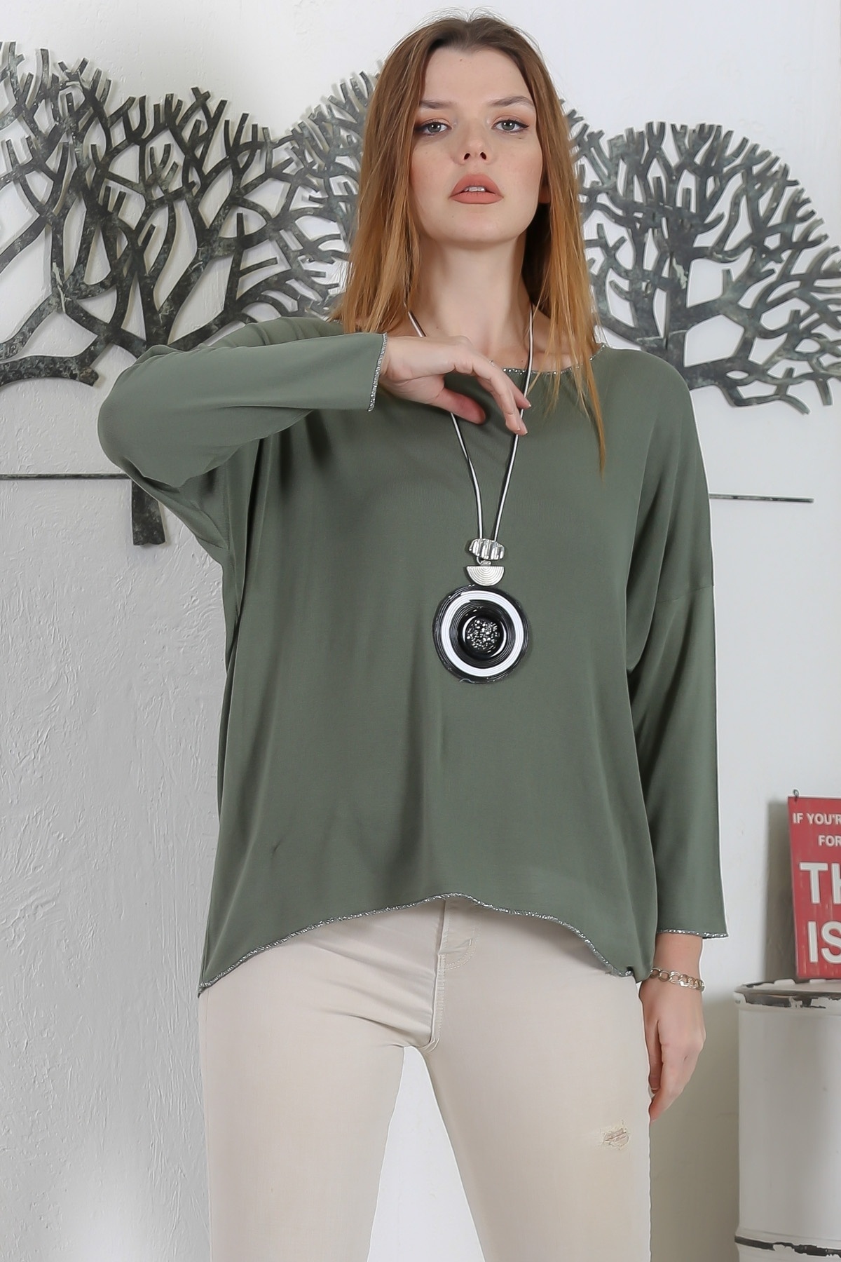 Haki Havuz Yaka Uzun Kol Yaka Ve Etek Ucu Lurex İpli Casual Kolyeli Triko Bluz Haki Havuz Yaka Uzun Kol Yaka Ve Etek Ucu Lurex İpli Casual Kolyeli Triko Bluz M10010200BL91705 2XL