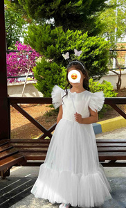 Kız Çocuk Beyaz Tasarım Elbise Kız Çocuk Beyaz Tasarım Elbise BY1010 9-10 Yaş
