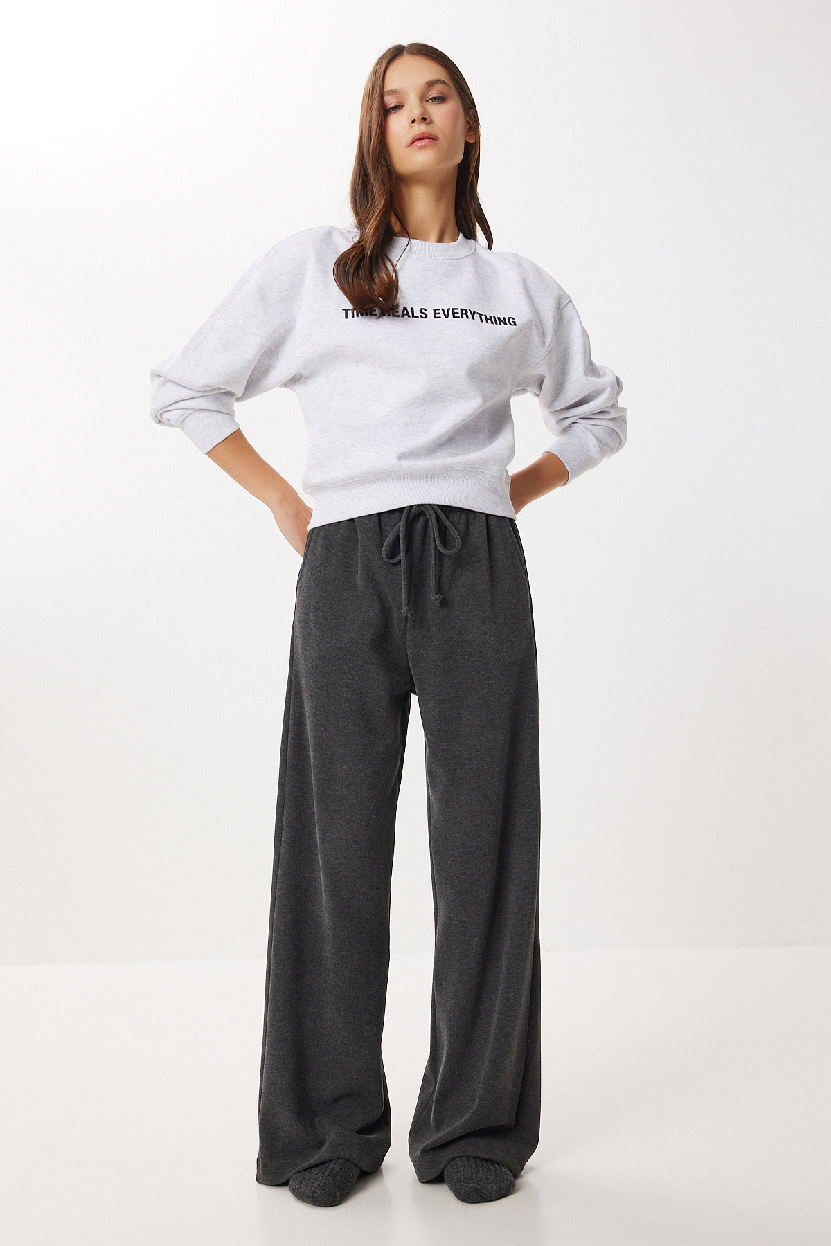 Yumoş Bol Örme Pantolon ANTRASİT LUB0063 Yumoş Bol Örme Pantolon ANTRASİT LUB0063 40