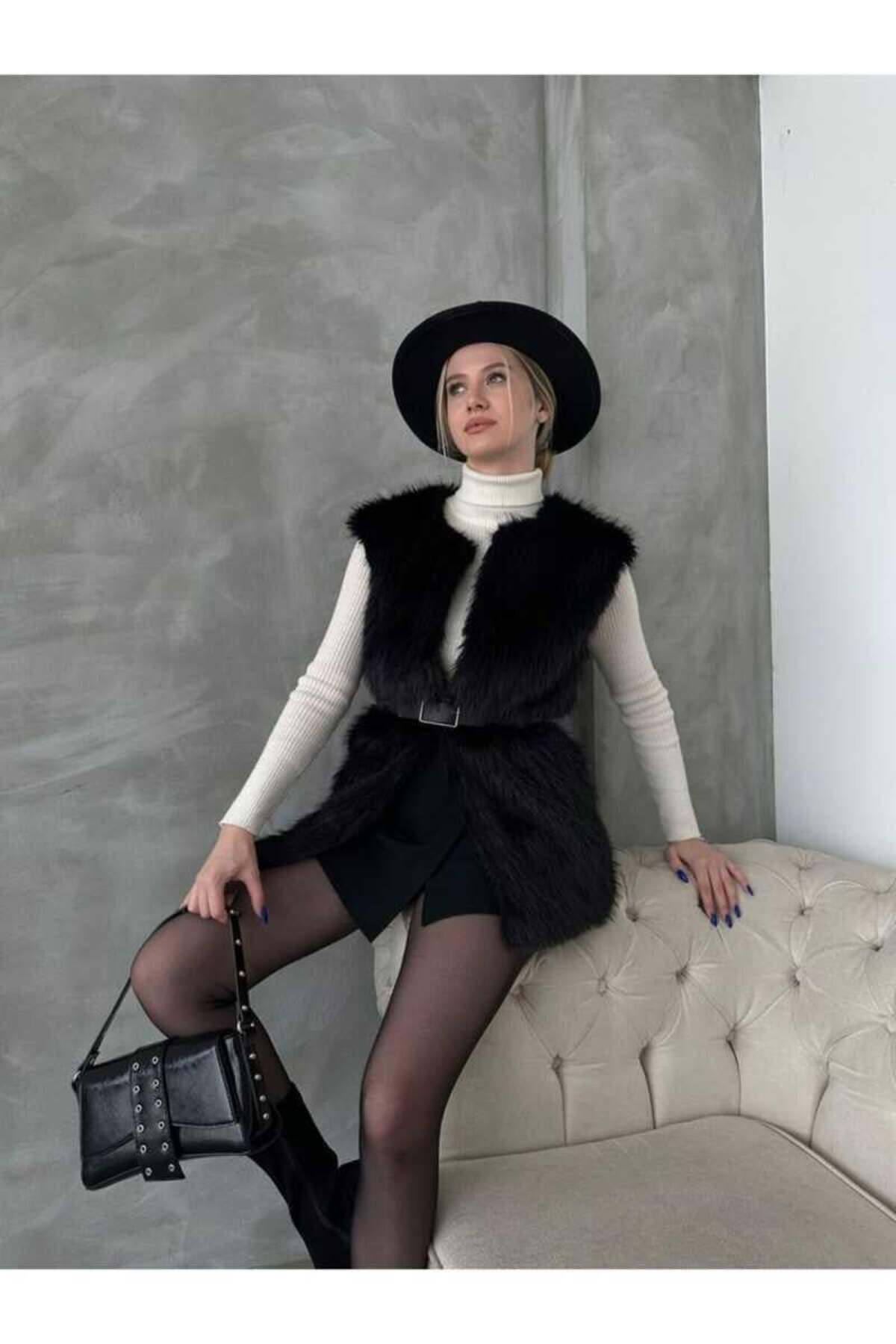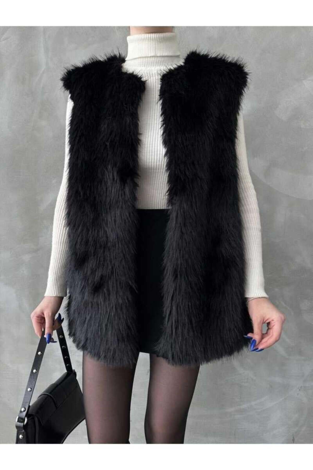 Lucia Yüksek Kalite Kadın Tüylü Yelek Siyah Lucia Yüksek Kalite Kadın Tüylü Yelek Siyah 101 24K1597 L