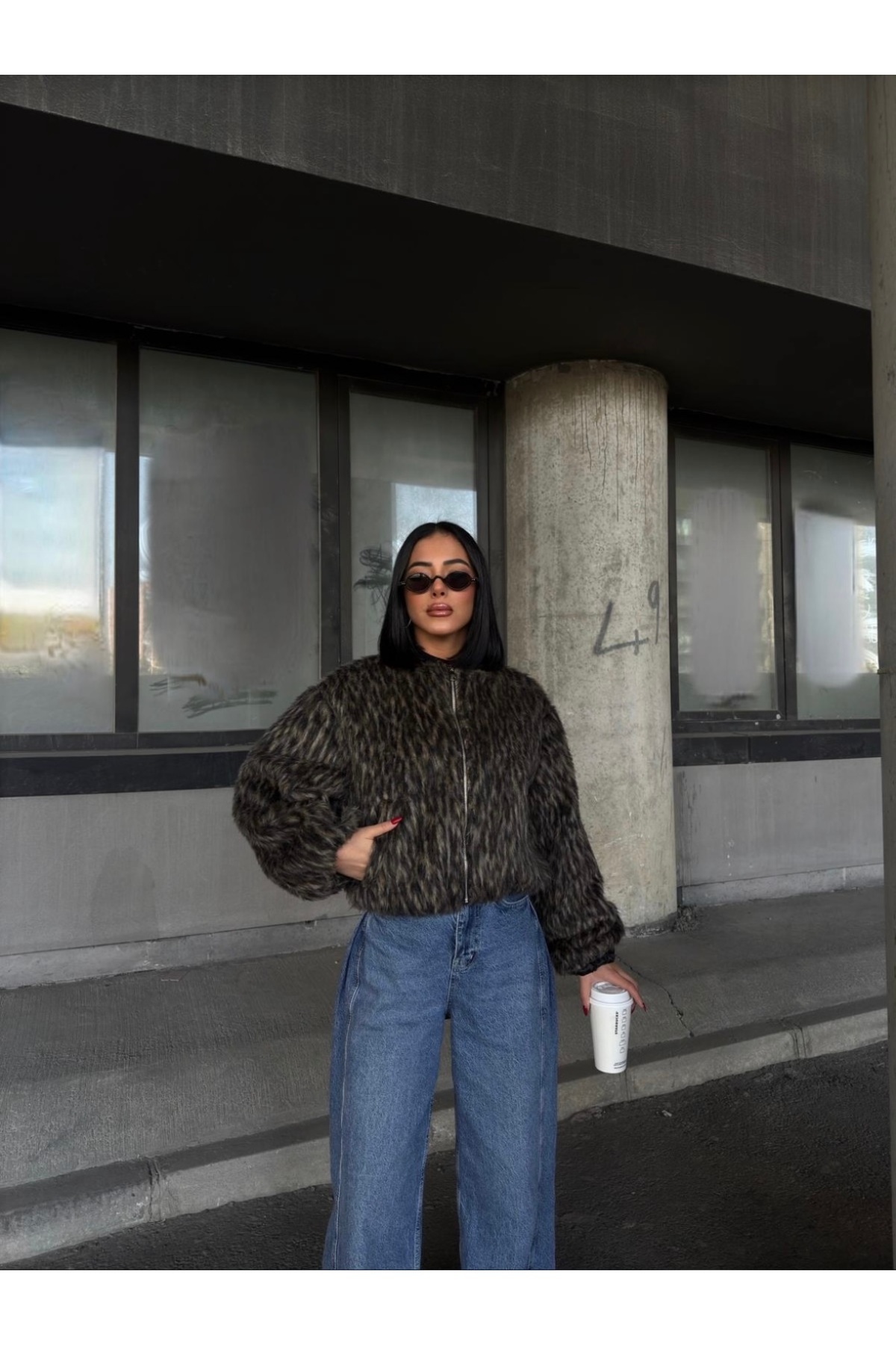Yeni Sezon Leopar Desenli Astarlı Tüylü Fermuarlı Ceket Yeni Sezon Leopar Desenli Astarlı Tüylü Fermuarlı Ceket CELİTA5008 L