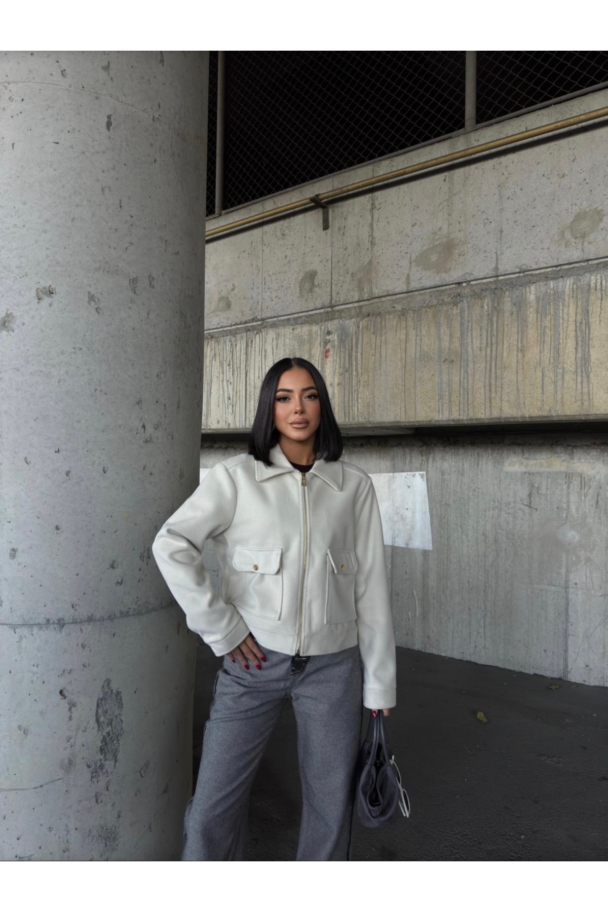 Bantlı Fermuarlı Astarlı Kadın Kaşe Ceket Bantlı Fermuarlı Astarlı Kadın Kaşe Ceket CELİTA5009 L