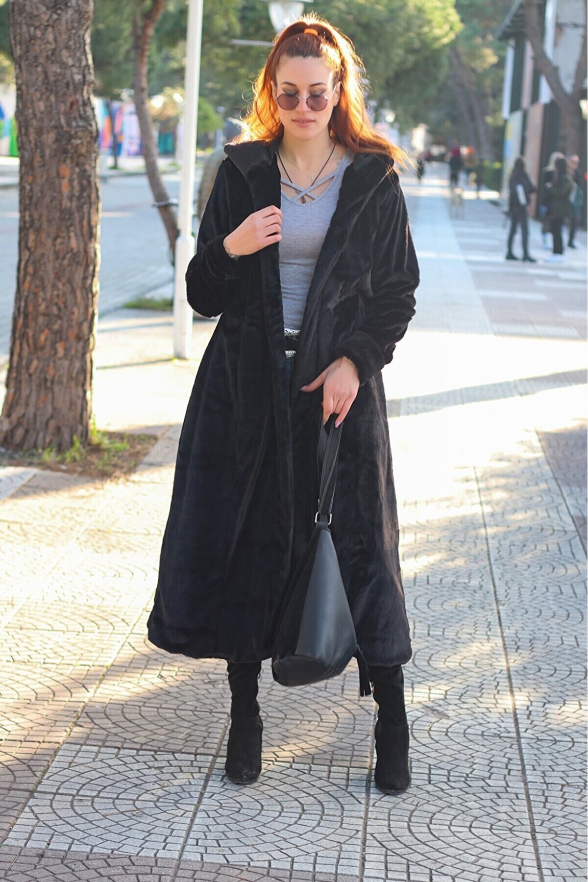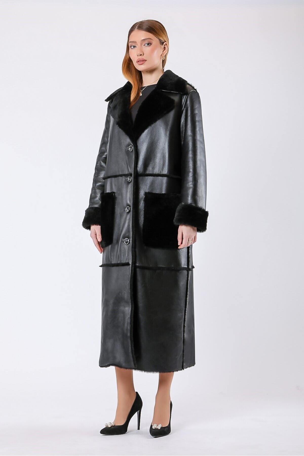 Siyah Çift Taraflı Kürk Kaban Siyah Çift Taraflı Kürk Kaban 22760-02 2XL