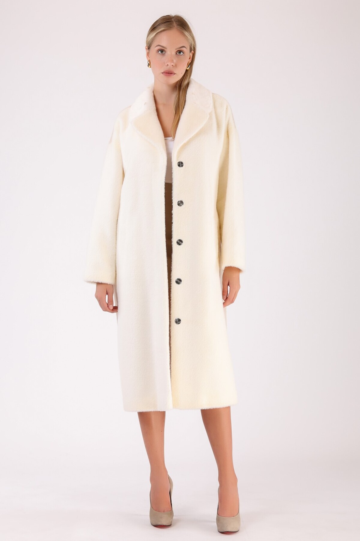 Ekru Kürk Aksesuarlı Yün Kaban Ekru Kürk Aksesuarlı Yün Kaban BS-A2115 2XL