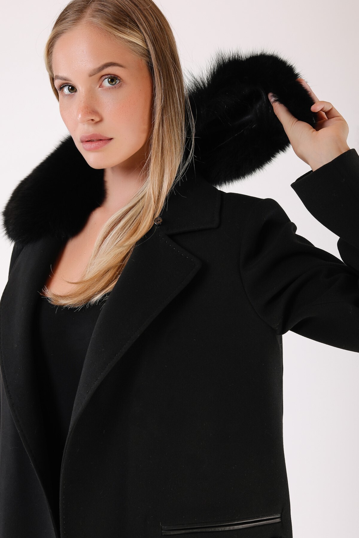Siyah Fox Kürk Aksesuarlı Kaşmir Kaban Siyah Fox Kürk Aksesuarlı Kaşmir Kaban A-9374-3 2XL