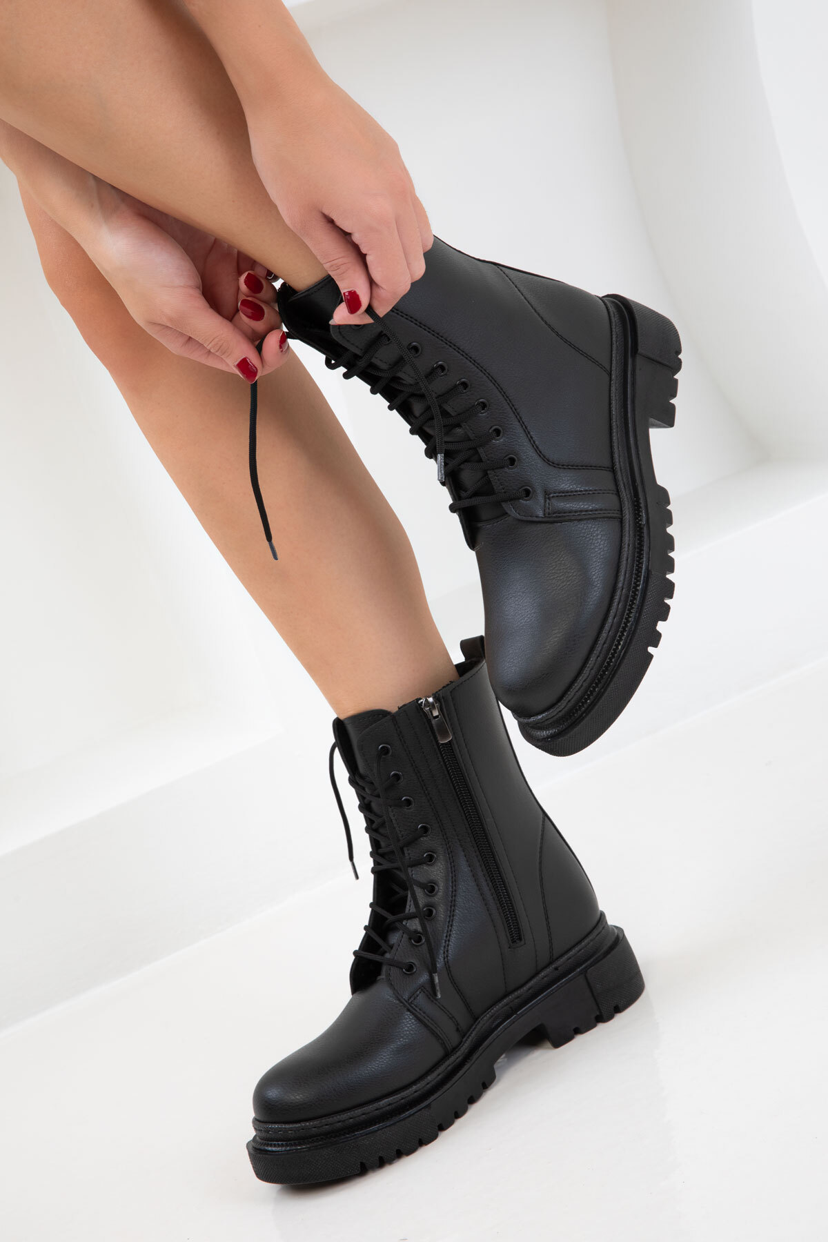 Siyah Hakiki Deri Kadın Bot & Bootie 20021 Siyah Hakiki Deri Kadın Bot & Bootie 20021 40