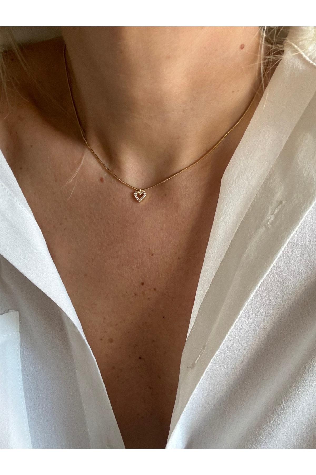 Paslanmaz Çelik Gold Mini Kalp Choker Kolye Paslanmaz Çelik Gold Mini Kalp Choker Kolye RS1842 تک سایز