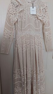Şeritli Kollu Dantel Detaylı Maxi Boy Uzun Kol Elbise Şeritli Kollu Dantel Detaylı Maxi Boy Uzun Kol Elbise 25K5116 44