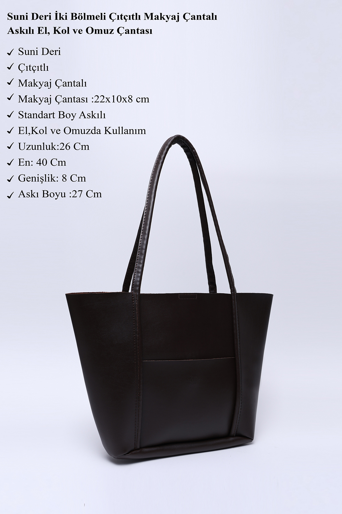 Kahve Rengi Shk80 Önü Cepli Çıtçıtlı Makyaj Çantalı Suni Deri Büyük Boy Kol ve Omuz Çantası Kahve Rengi Shk80 Önü Cepli Çıtçıtlı Makyaj Çantalı Suni Deri Büyük Boy Kol ve Omuz Çantası S225-00143 تک سایز