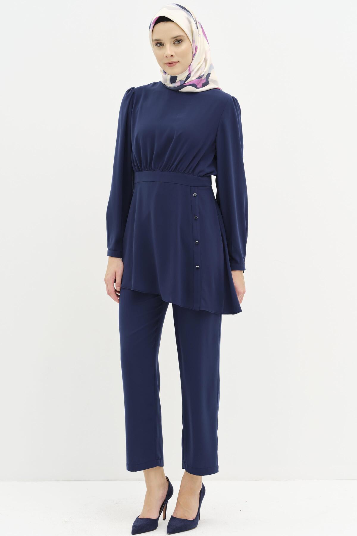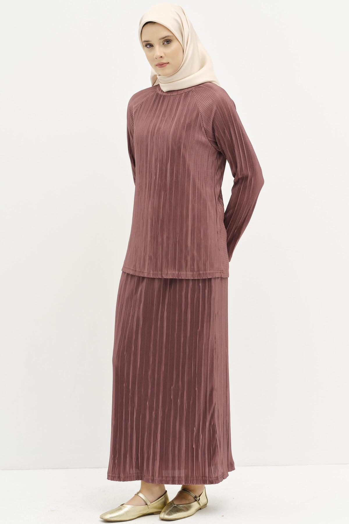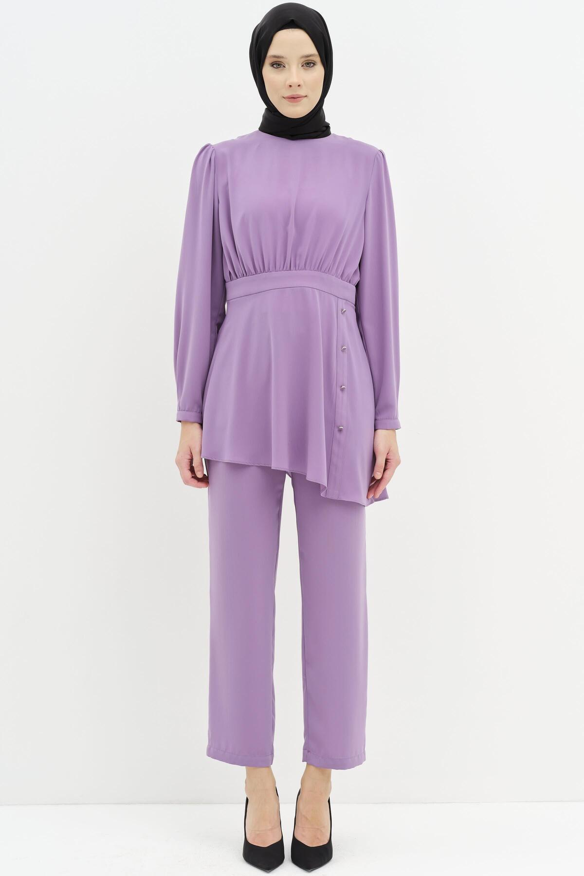 Büzgülü Bluz Pantolon Takım - Lila Büzgülü Bluz Pantolon Takım - Lila 242TK3057TB.01-18 44