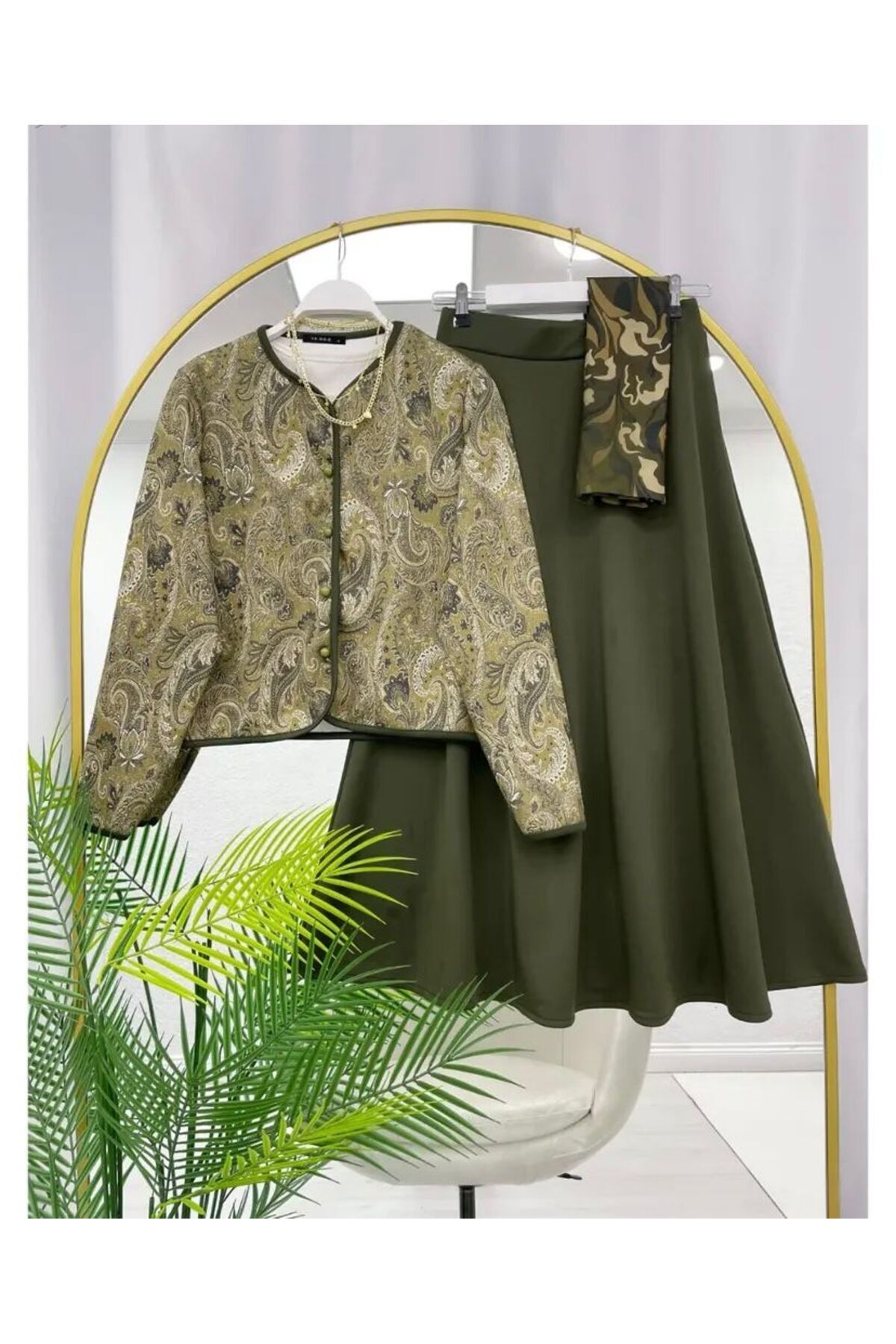 Kadın Uzun Yüksek Bel Etek Bluz Şardonlu Kaşkorse İkili Takım Kadın Uzun Yüksek Bel Etek Bluz Şardonlu Kaşkorse İkili Takım ROT-612160-MN 2XL/3XL