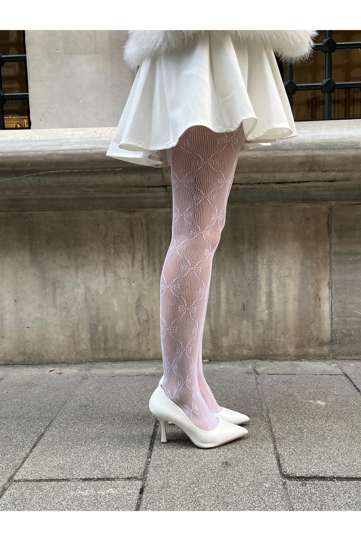 Kadın Beyaz İthal Desenli Külotlu Çorap Kurdale Desenli Kadın Beyaz İthal Desenli Külotlu Çorap Kurdale Desenli Cans121332487 L/XL