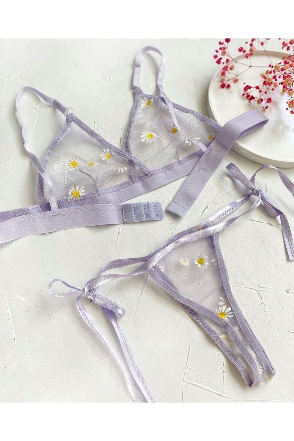 Edna Lila Çiçek Desenli Tanga Külotlu Sütyen Takım Edna Lila Çiçek Desenli Tanga Külotlu Sütyen Takım Edna-1 90B