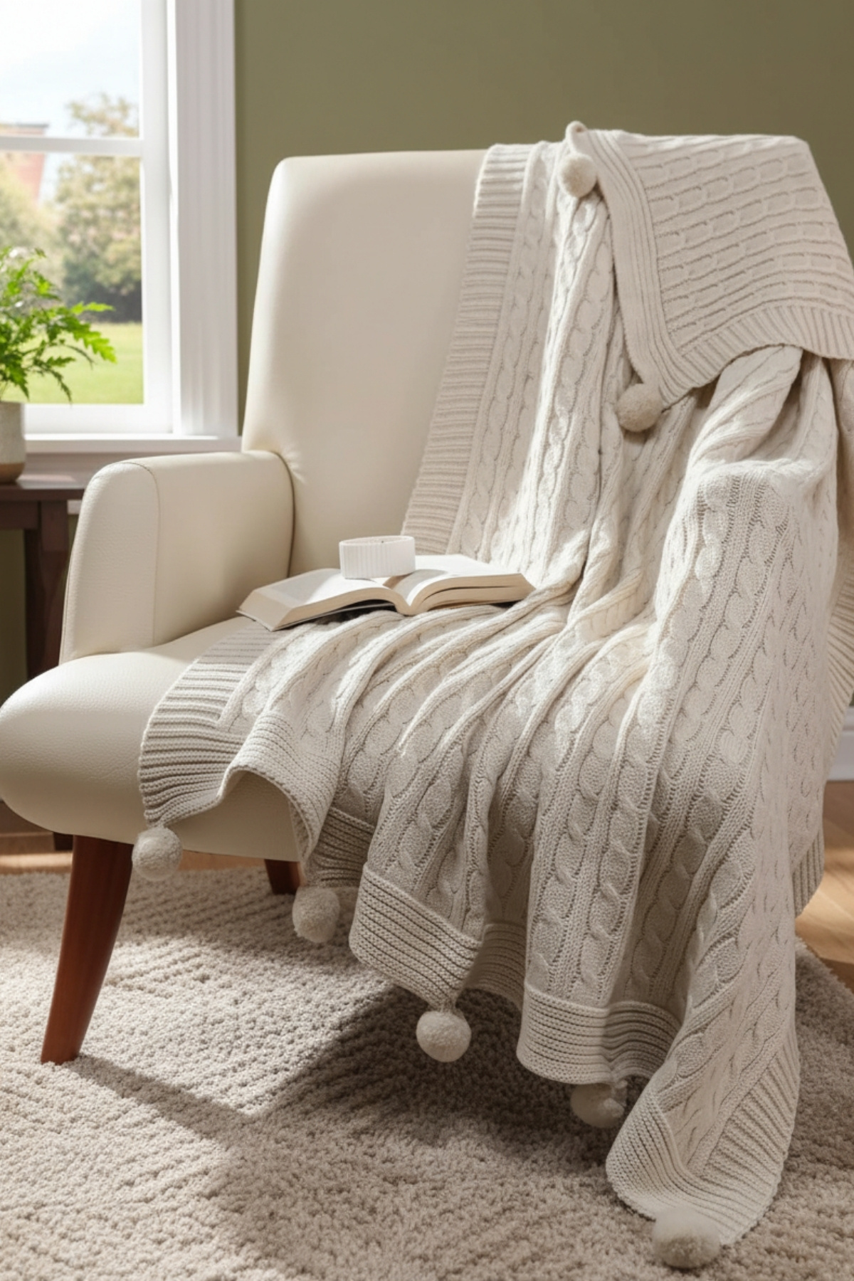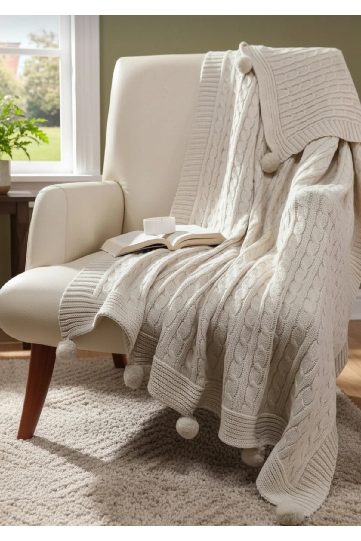 Ponponlu Triko Örme Tv Battaniyesi – Koltuk & Omuz Şalı & Diz Battaniyesi – 130x170cm - Krem Ponponlu Triko Örme Tv Battaniyesi – Koltuk & Omuz Şalı & Diz Battaniyesi – 130x170cm - Krem 56-2501 130 x 170