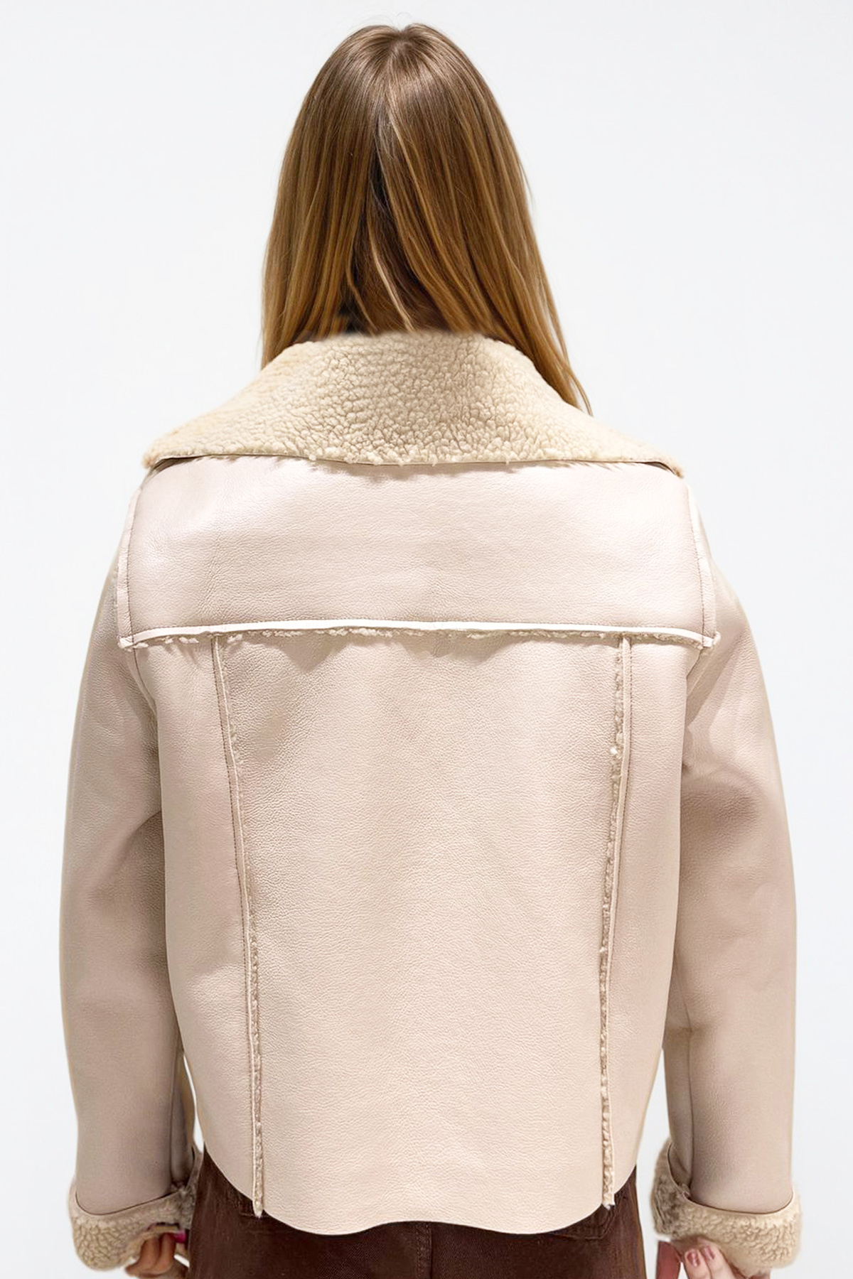 Kadın Taş Çift Cepli İçi Suni Kürklü Suni Deri Biker Ceket Prm0408 Kadın Taş Çift Cepli İçi Suni Kürklü Suni Deri Biker Ceket Prm0408 PRM0408 L